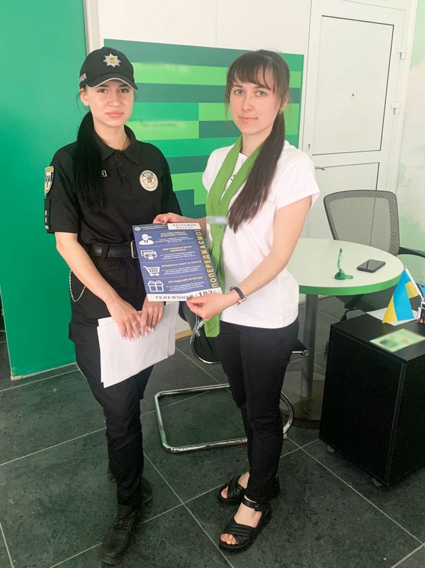 Поліція проводить профілактичні відпрацювання для інформування громадян про шахрайські схеми. На ринках, зупинках громадського транспорту та в інших місцях скупчення людей поліцейські розповсюджують інформаційні листівки. Кожна така листівка містить опис найбільш «популярних» шахрайських прийомів, рекомендації поліції як діяти в тій чи іншій ситуації.
