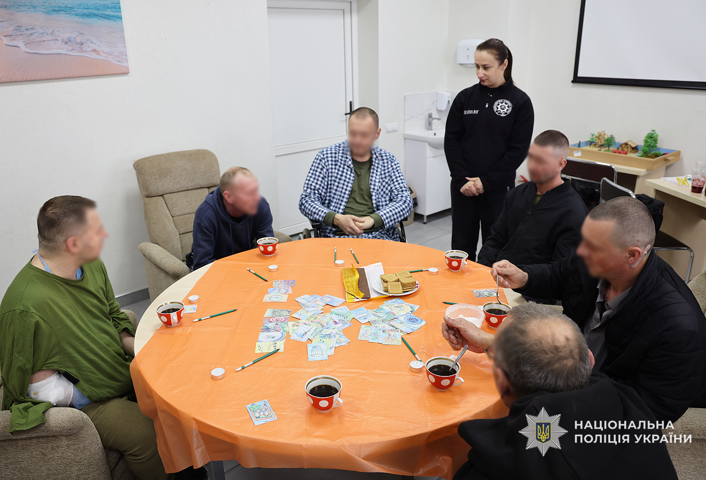 Арт-терапія до Великодня: психологи поліції Чернігівщини провели творчий майстер-клас для поранених захисників, які проходять лікування у відомчій медустанові