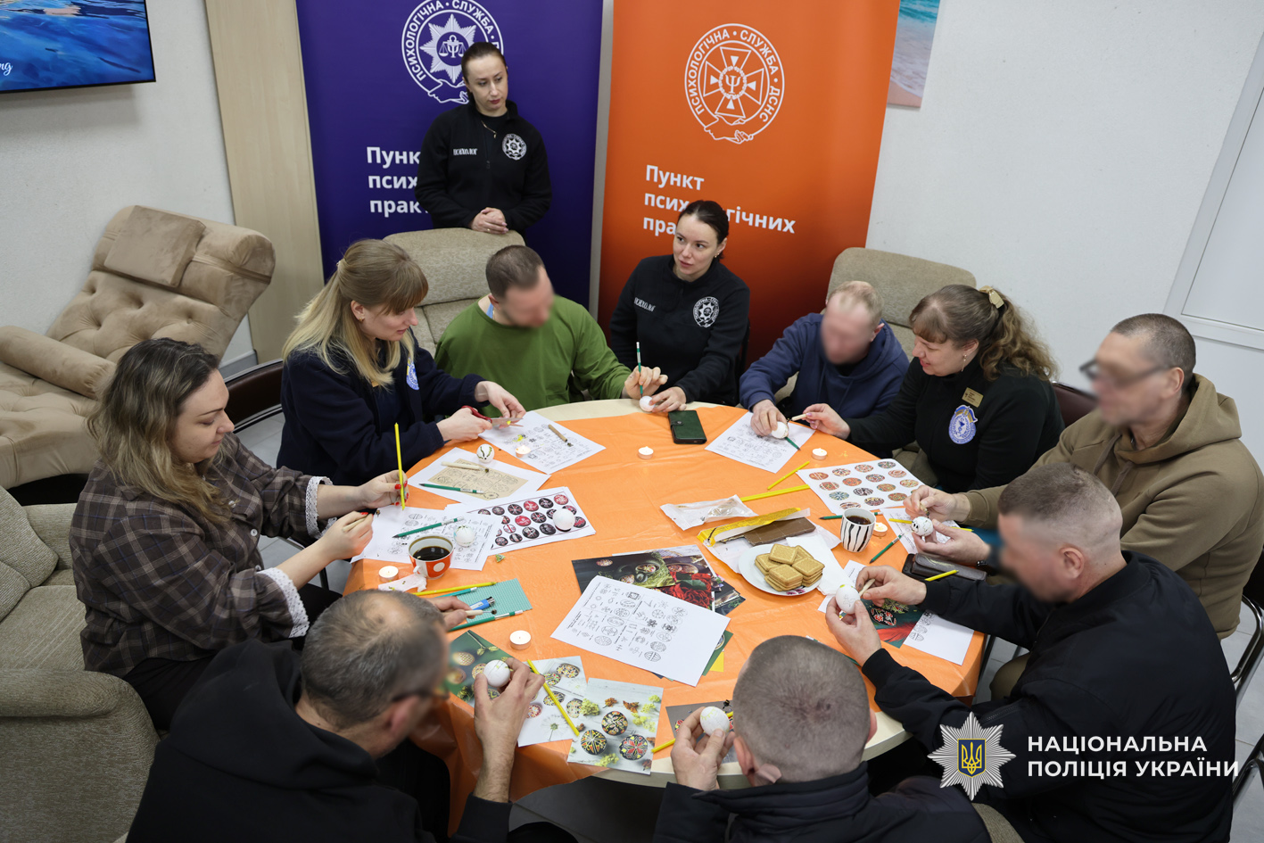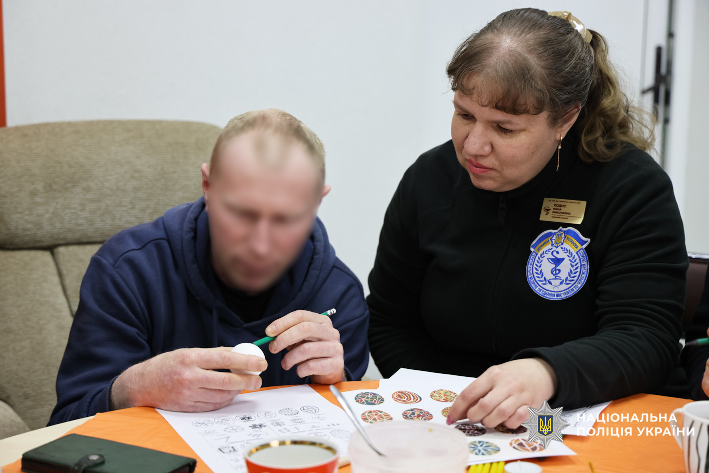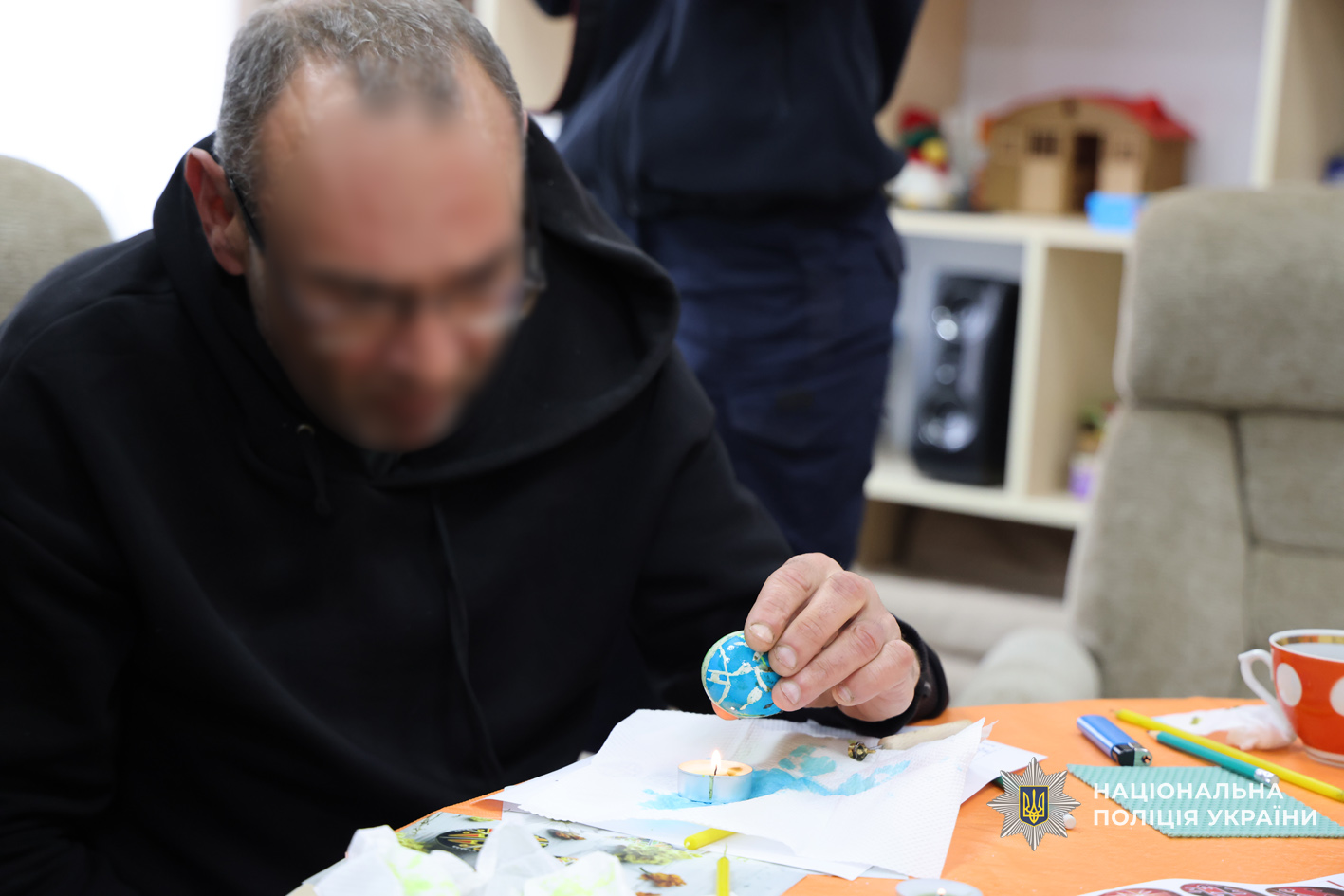 Фахівці психологічної служби поліції Чернігівської області спільно з колегами з Державної служби з надзвичайних ситуацій України та ДУ «ТМО МВС України по Чернігівській області» провели для поранених творчий майстер-клас з розмальовки великодніх крашанок. Такий формат роботи обрали невипадково: арт-терапія є одним із ефективних методів психологічної підтримки, що допомагає зняти напруження, переключити увагу, відновити внутрішню рівновагу та подарувати позитивні емоції.