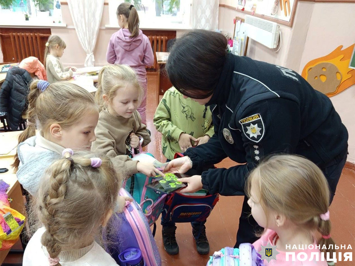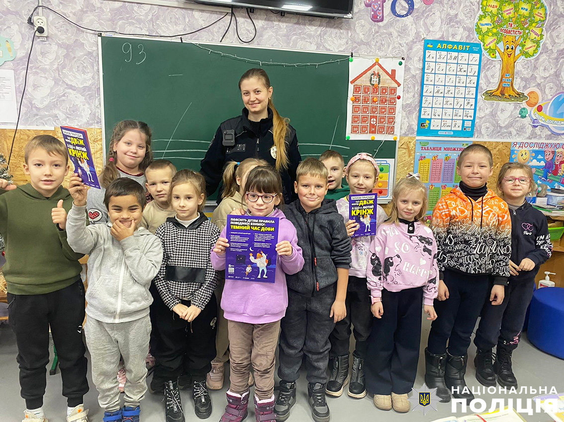 Під час спілкування з дітьми правоохоронці акцентували увагу на особливостях руху в умовах поганої видимості. Вони нагадали, що водіям не завжди легко помітити пішоходів у темряві, тому використання світлоповертаючих наліпок, нашивок чи інших аналогічних елементів є необхідним заходом безпеки.