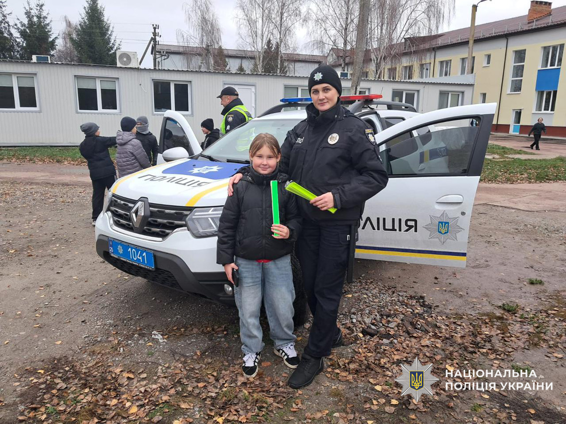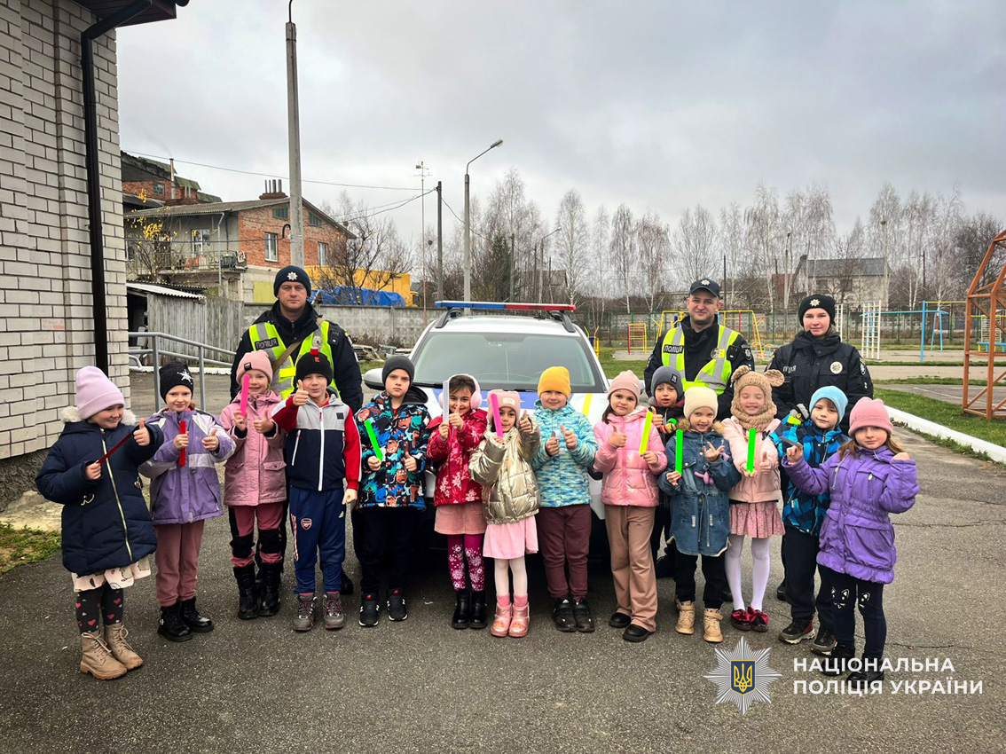 Особливу увагу інспектори приділили темі видимості пішоходів у темну пору доби. Правоохоронці розповіли про користь світловідбивних елементів - флікерів, якими варто доповнювати одяг, наплічники чи сумки. Такі елементи допомагають водіям помітити пішохода здалеку.