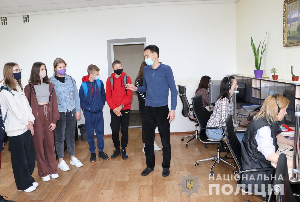 Сьогодні школярі ознайомилися з роботою різних підрозділів поліції: зокрема, з роботою первинної групи комунікації поліції (фронт-офіс), колл-центру служби «102», чергової частини та ситуаційного центру. Також діти побачили, як працюють криміналіст та кінолог. Окрім того, школярі дізналися, як вступити до вищих навчальних закладів системи МВС, щоб у майбутньому стати поліцейським.