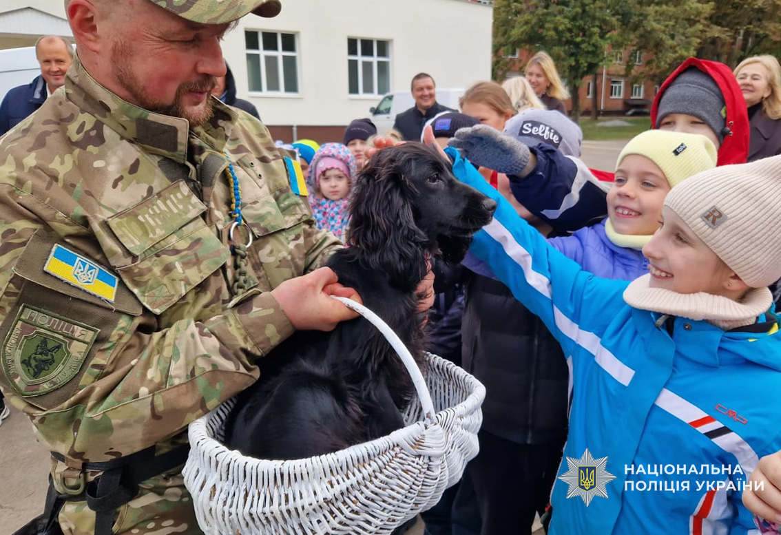 Службові собаки підкорили юних глядачів вправністю виконання команд. Здивували вмінням швидко знаходити макети заборонених речовин та предметів з запахом. Найбільший захват у дітей викликали жваві цуценята - спаніелі. Школярі мали можливість не тільки побачити собак в роботі, а й познайомитись ближче - погладити їх.
