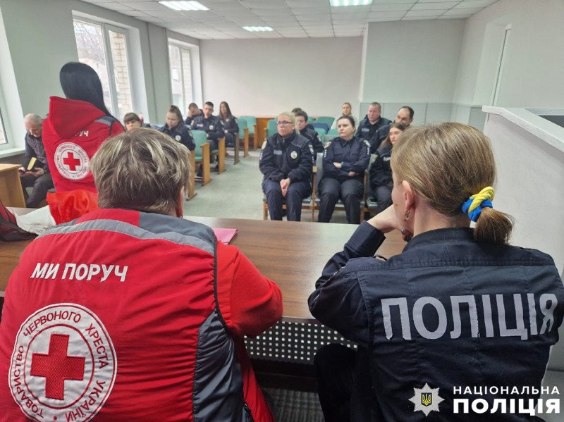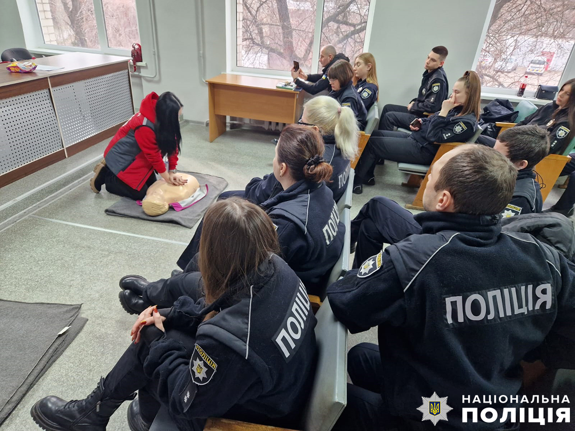 Під час тренінгу правоохоронці ознайомилися з алгоритмом надання першої допомоги у різних загрозливих для життя ситуаціях, а також практично відпрацювали навички з використанням манекенів й необхідних матеріалів.