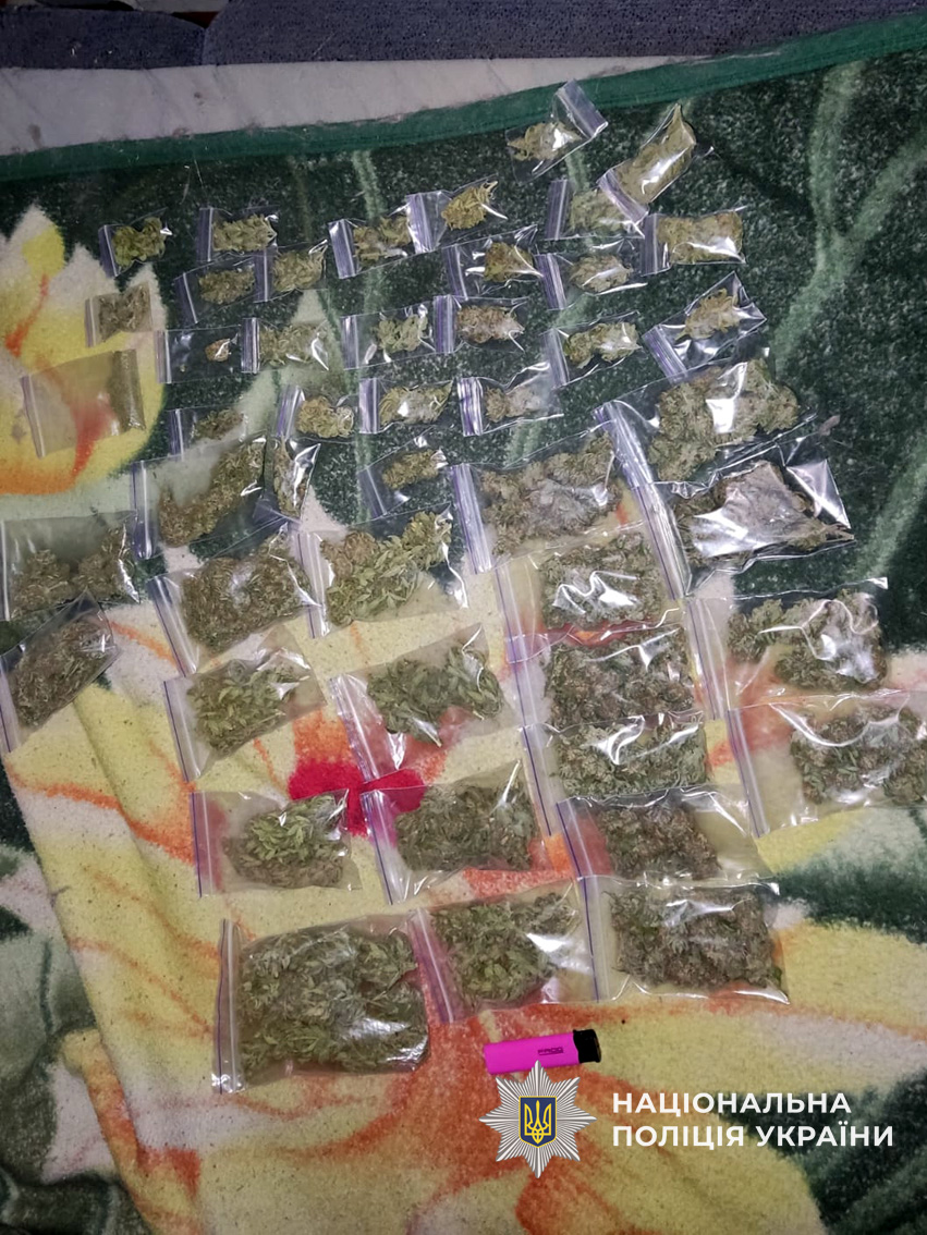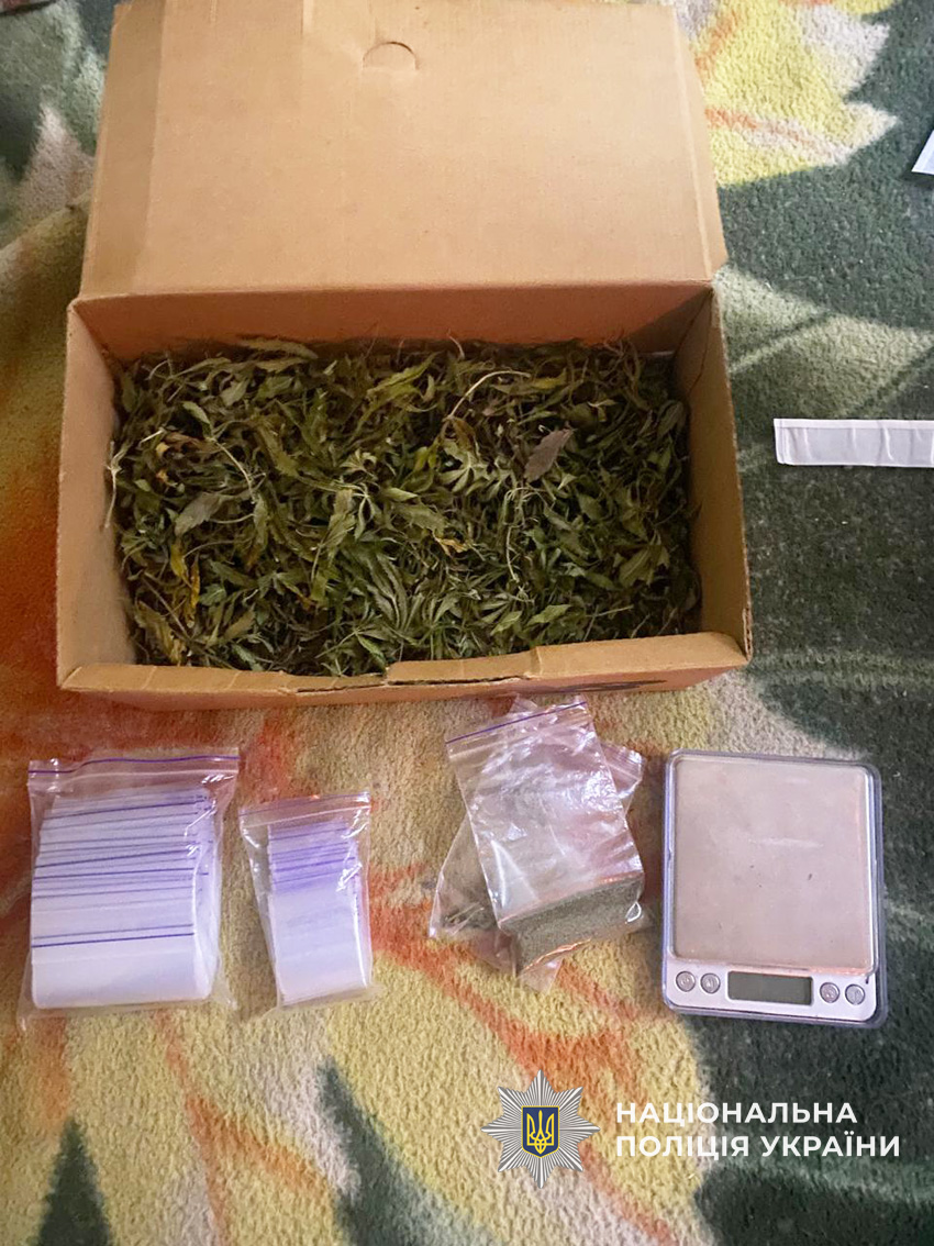 В ході санкціонованого обшуку квартирі 39-річного містянина правоохоронці виявили та вилучили понад 50 поліетиленових зіп-пакетів з речовиною рослинного походження, що схожа на канабіс, картонну коробку з нерозфасованим наркозіллям, електронні ваги, поліетиленові зіп-пакети для фасування наркозасобів, пристрій для куріння, мобільний телефон та інші речові докази, які свідчать про його злочинну діяльність.