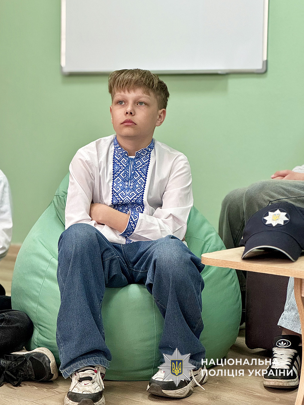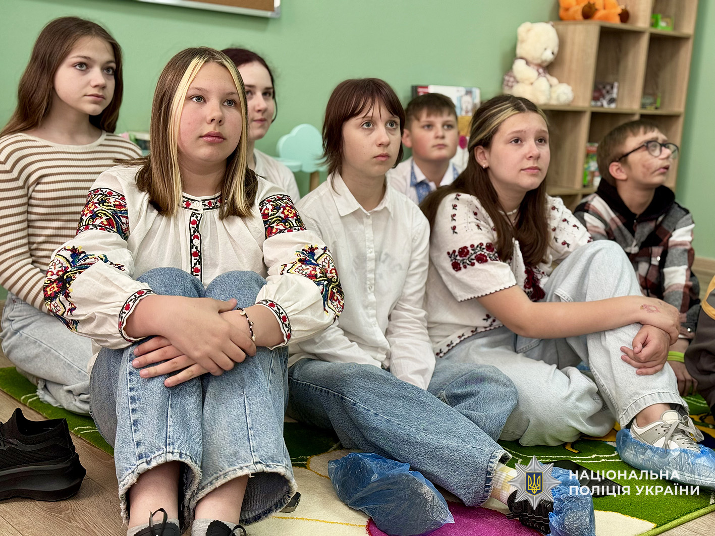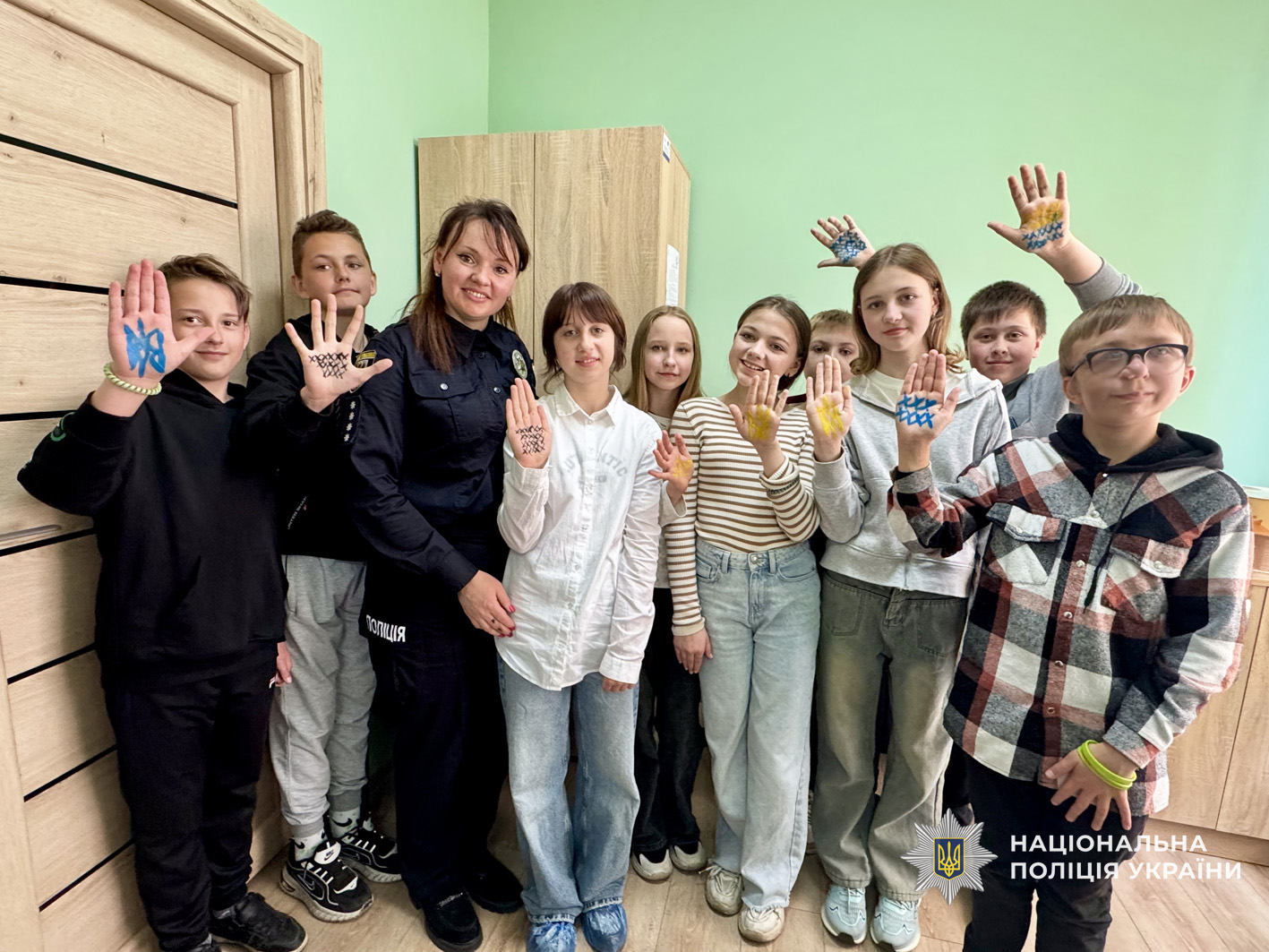 Поліцейські розповіли юним відвідувачам про особливості своєї роботи та відповіли на численні запитання. Зокрема, школярі побачили «зелену кімнату» — спеціально облаштоване безпечне середовище для спілкування з дітьми, які постраждали або стали свідками правопорушень.