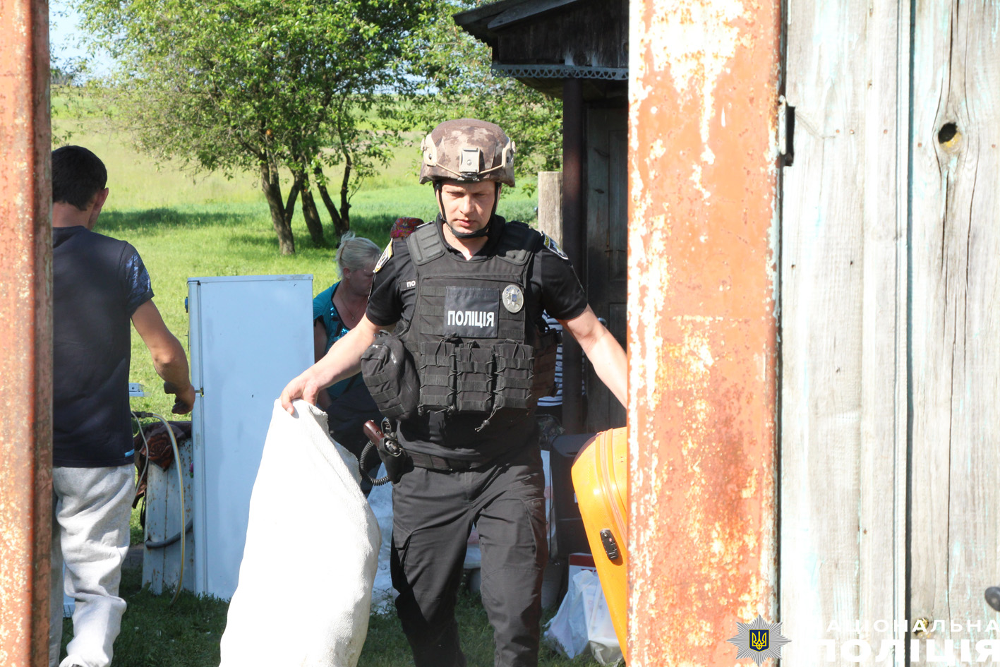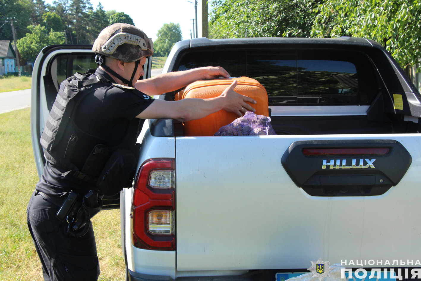 Поліцейські максимально швидко і злагоджено завантажили найбільш необхідні речі родини вимушених переселенців у надану місцевим лісогосподарським підприємством вантажівку. Родина та її майно у супроводі поліцейських рушили в безпечнішу Понорницьку громаду Новгород-Сіверського району.