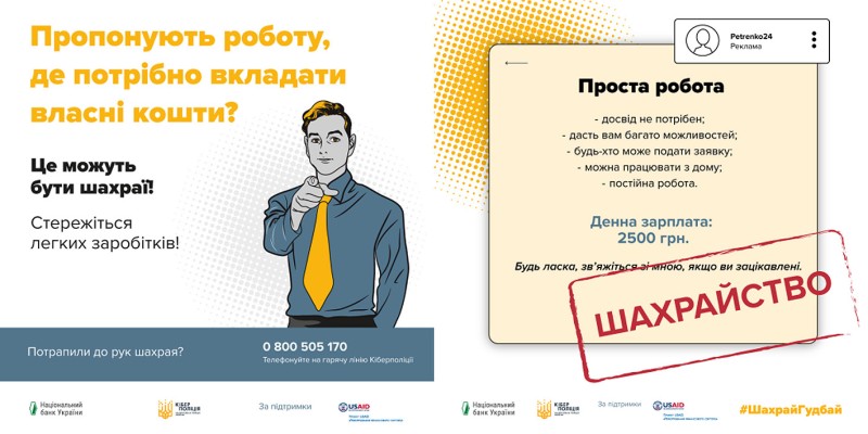 Поліція Чернігівської області застерігає громадян: не переказуйте гроші на невідомі реквізити та критично ставтеся до пропозицій про «легкий» заробіток в інтернеті.