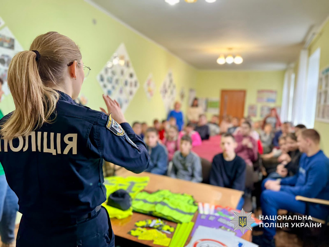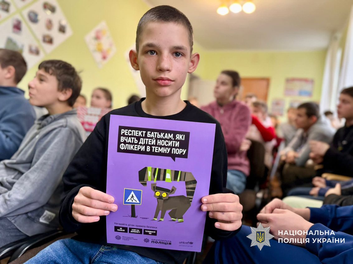 Поліцейські подарували кожному маленькому учаснику флікер — світловідбивний елемент, який допоможе бути помітним у темну пору доби. А ще — солодощі та подарунки.
