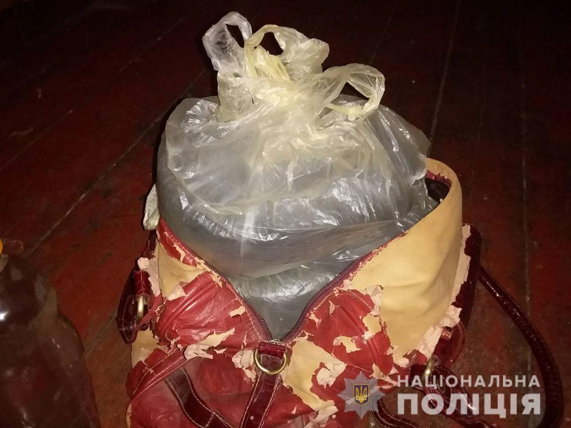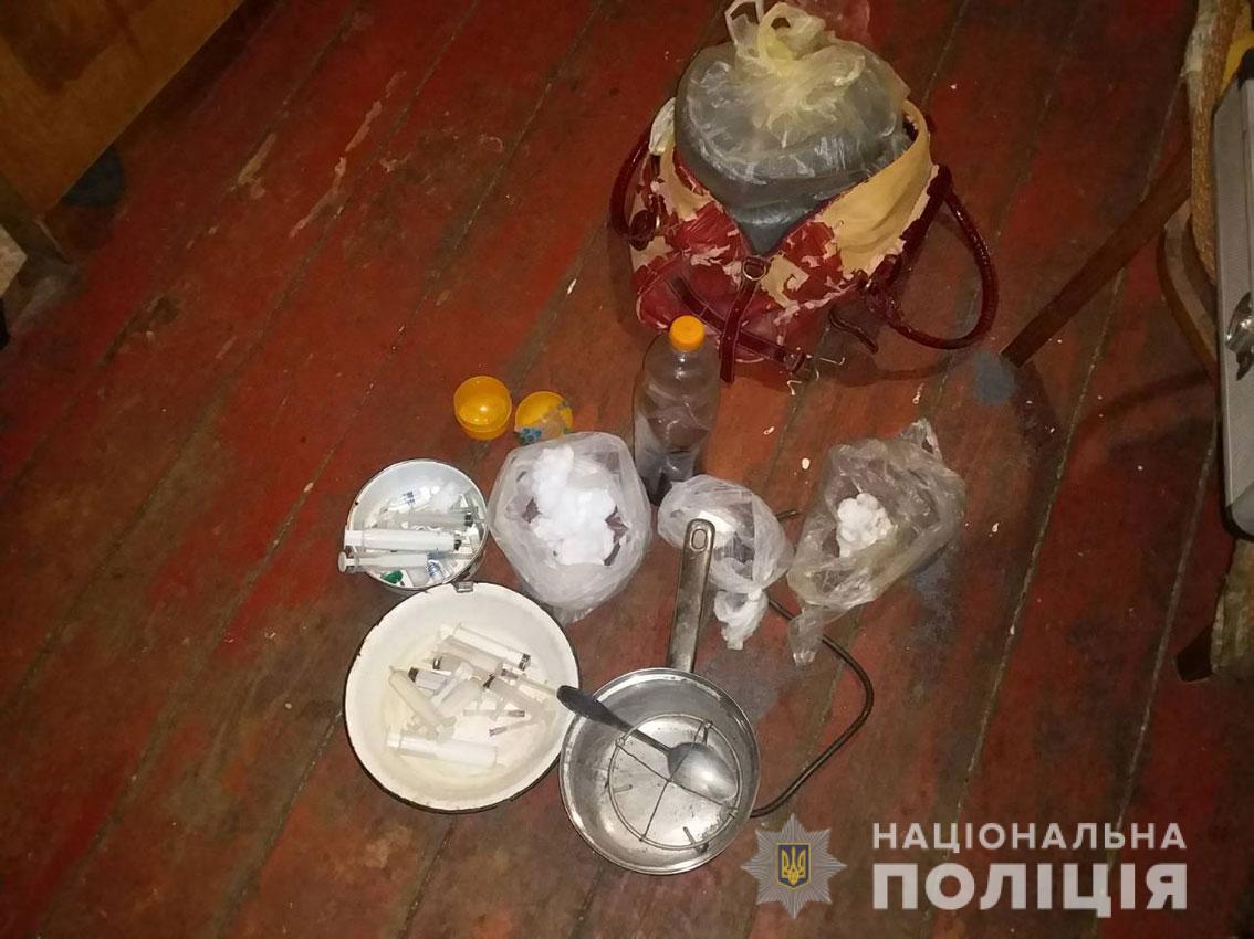 Поліцейські разом з представником прокуратури з дозволу господаря будинку провели обшук, під час якого виявили близько 60 грамів темно-коричневої речовини, схожої на ацетильований опій, ємність для виготовлення, шприци та біля 5 кілограмів виварених зерен маку.
