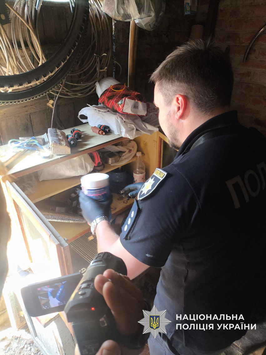 Після документування низки фактів протиправної діяльності, із залученням поліцейського кінолога зі службовою собакою правоохоронці провели санкціонований обшук у помешканні зловмисника, в ході якого виявили та вилучили речові докази, які свідчать про його злочинну діяльність. Вилучене поліція направила на проведення експертних досліджень.