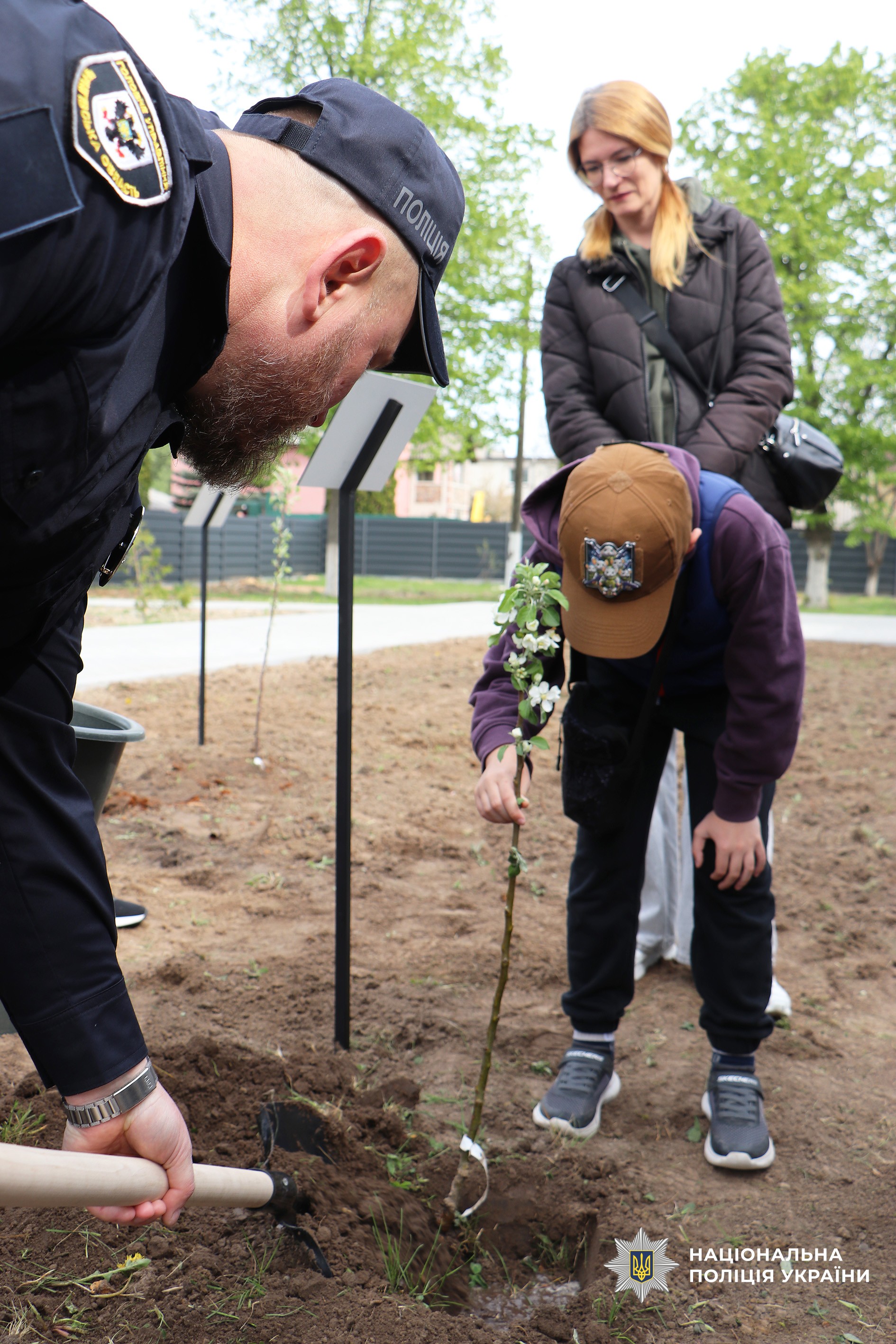 Кожен з них – приклад мужності, героїзму та самовідданої любові до рідної землі. У пам'ять про поліцейських, які віддали свої молоді життя за Україну, керівництво обласної поліції спільно з родинами полеглих побратимів зібралися разом, щоб створити особливе місце пам’яті та висадити іменний яблуневий сад. Ці дерева щовесни розквітатимуть та крізь роки лишатимуть живу пам'ять про Героїв.