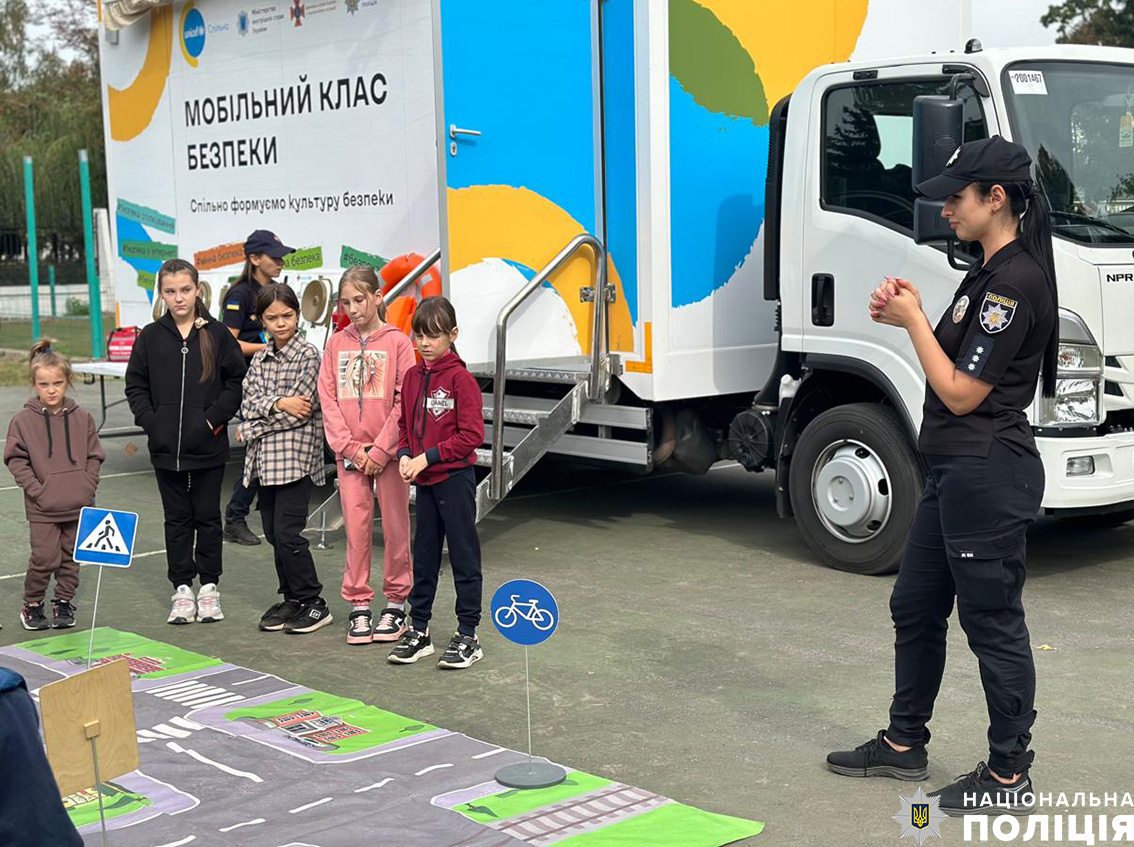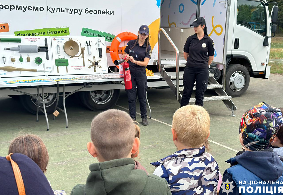 Мобільний клас безпеки: на Новгород-Сіверщині поліцейські та рятувальники продовжують навчати дітей правилам безпеки