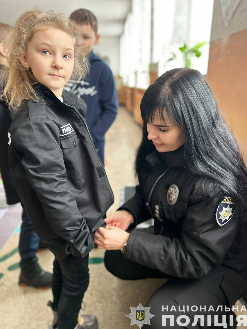 Насамкінець зустрічі діти мала змогу побути поліцейськими та рятувальниками, примірявши копії форменого одягу.
