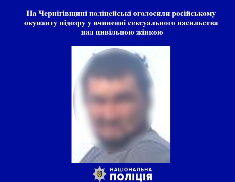 Слідчі поліції Чернігівщини за оперативного супроводу регіонального Управління стратегічних розслідувань та у взаємодії з відділом кримінального аналізу ГУНП в Чернігівській області встановили особу 38-річного військовослужбовця рф, причетного до вчинення сексуального насильства над мешканкою одного з сіл Чернігівського району. Загарбникові оголошено підозру у вчиненні воєнного злочину.