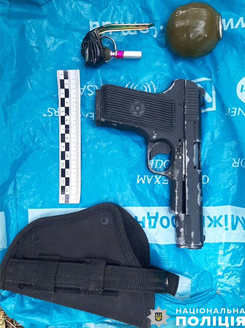 Загалом в ході слідчих дій поліцейські виявили та вилучили у фігурантів пістолет ТТ, корпуси ручних осколкових гранат РГН та РГД і запали до них, понад 100 набоїв до автоматичної стрілецької зброї. Все вилучене направлено на проведення експертних досліджень.