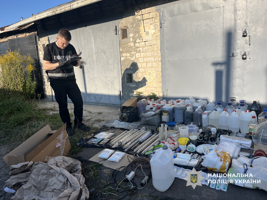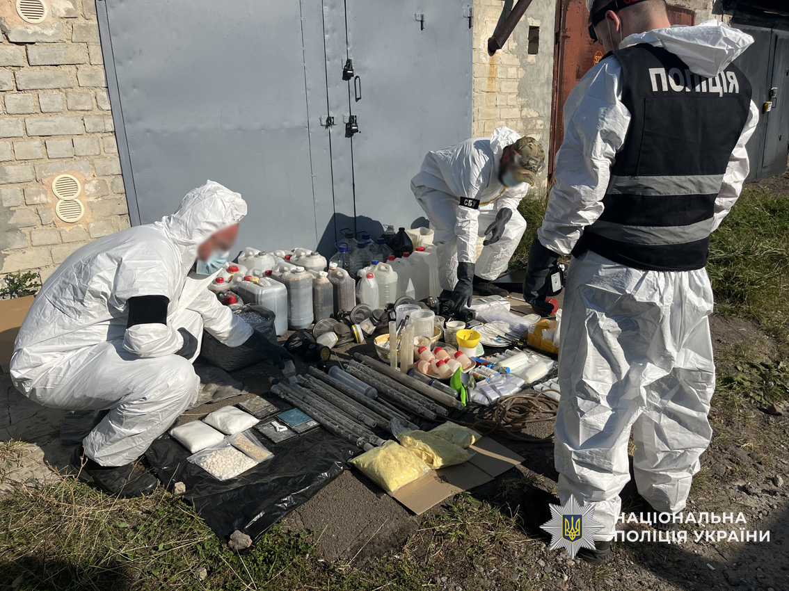 За місцем мешкання фігурантів та у гаражному приміщенні, облаштованому під нарколабораторію, поліцейські провели одночасні санкціоновані обшуки. В ході цих слідчих дій правоохоронці виявили та вилучили комплекти лабораторного обладнання для виготовлення психотропних речовин. Загалом вилучено близько кілограма речовини, що схожа на амфетамін, понад 200 літрів хімічних рідин, які використовуються для синтезу психоактивних речовин та близько 4 кілограмів порошкоподібних прекурсорів. Вартість вилученого за цінами «чорного» ринку сягає близько півмільйона гривень.