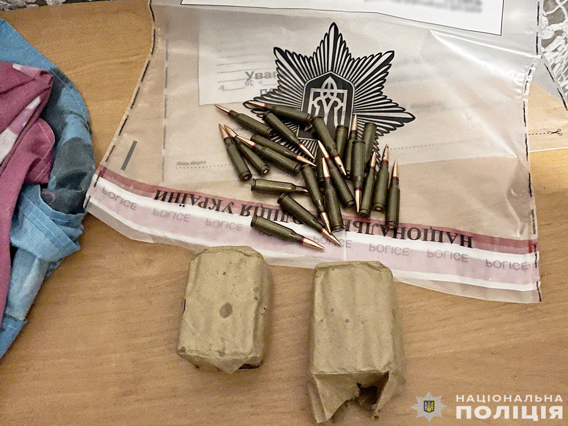 Зібравши вагому доказову базу, правоохоронці провели санкціоновані обшуки із залученням кінолога зі службовою собакою вдома у зловмисника та на об’єктах, до яких він має відношення. У результаті слідчих дій поліцейські виявили та вилучили дві ручні гранати із запалами, понад сотню набоїв до автоматичної стрілецької зброї, магазини та багнети-ножі до автоматів Калашникова, інші речові докази. Все вилучене правлено на проведення експертних досліджень.
