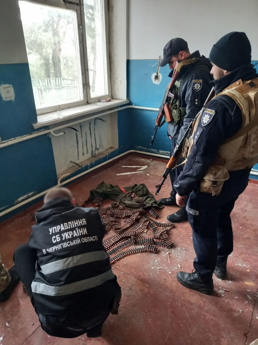 В ході проведення спільних контрдиверсійних заходів в населених пунктах, які тимчасово перебували під окупацією військ російської федерації, правоохоронці виявили в нежилих будівлях одного з сіл Корюківського району два схрони з боєприпасами.