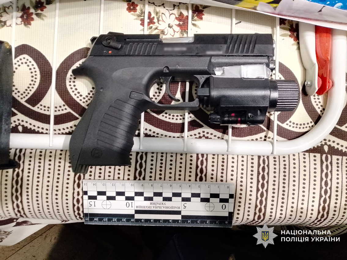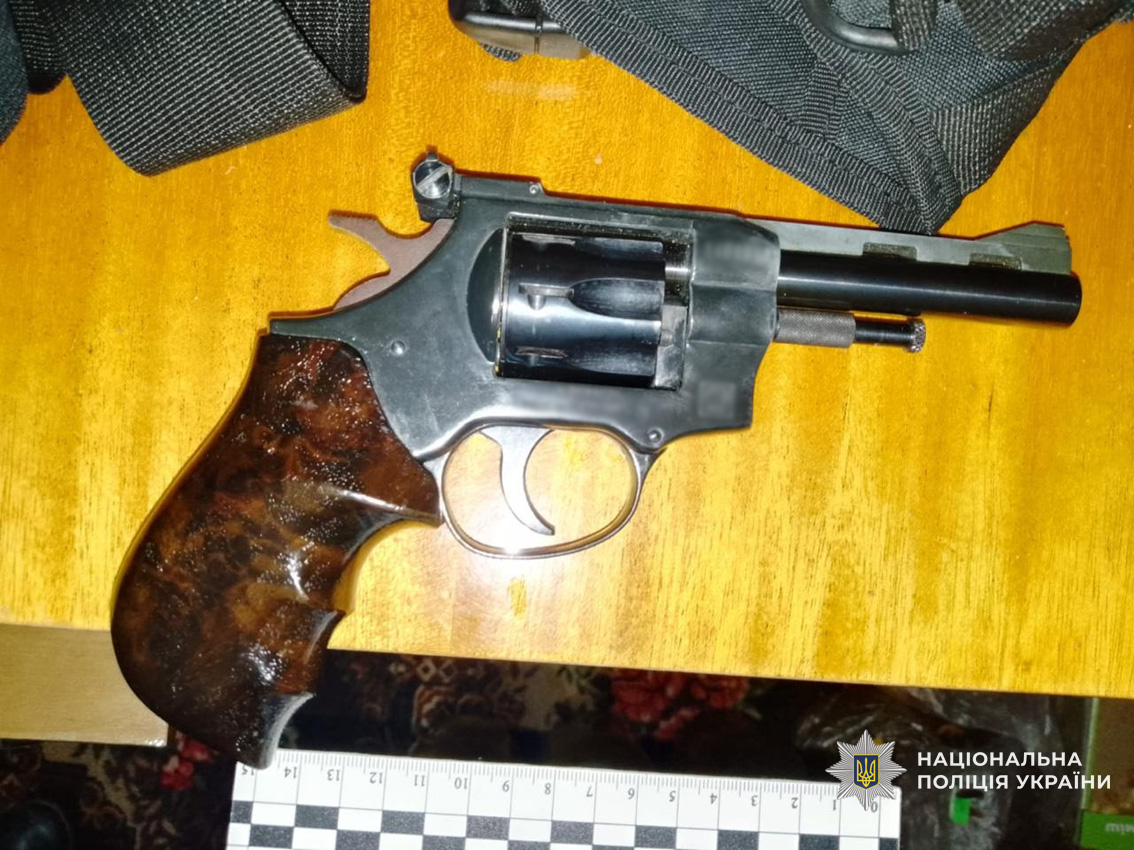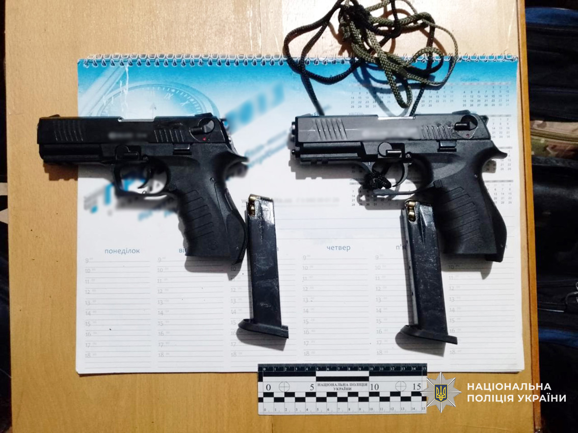 Поліція затримала підозрюваного у порядку статті 208 Кримінального процесуального кодексу України. В ході затримання зловмисник чинив опір. У стрільця виявлено 2 пістолети та 2 револьвери з ознаками переробки.