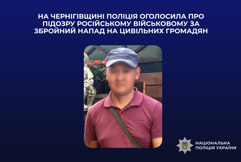 На Чернігівщині поліція оголосила про підозру російському військовому за збройний напад на цивільних громадян
