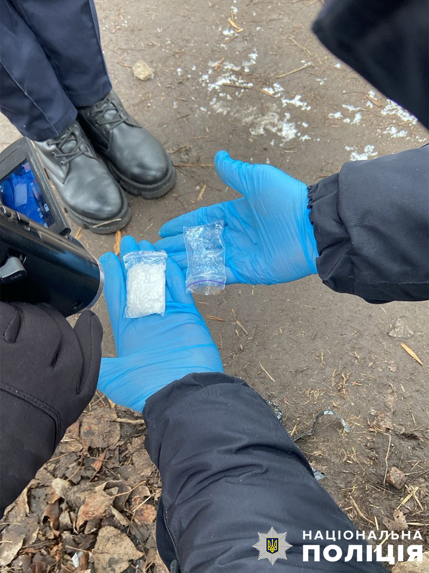В ході реалізації зібраної оперативної інформації поліцейські задокументували факт чергового прибуття злочинного дуету до Ніжина і отримання посилки із забороненим вмістом. Після цього зловмисники вирушили на одну з вулиць міста і розпочали розкладання «закладок», під час чого поліцейські їх затримали.