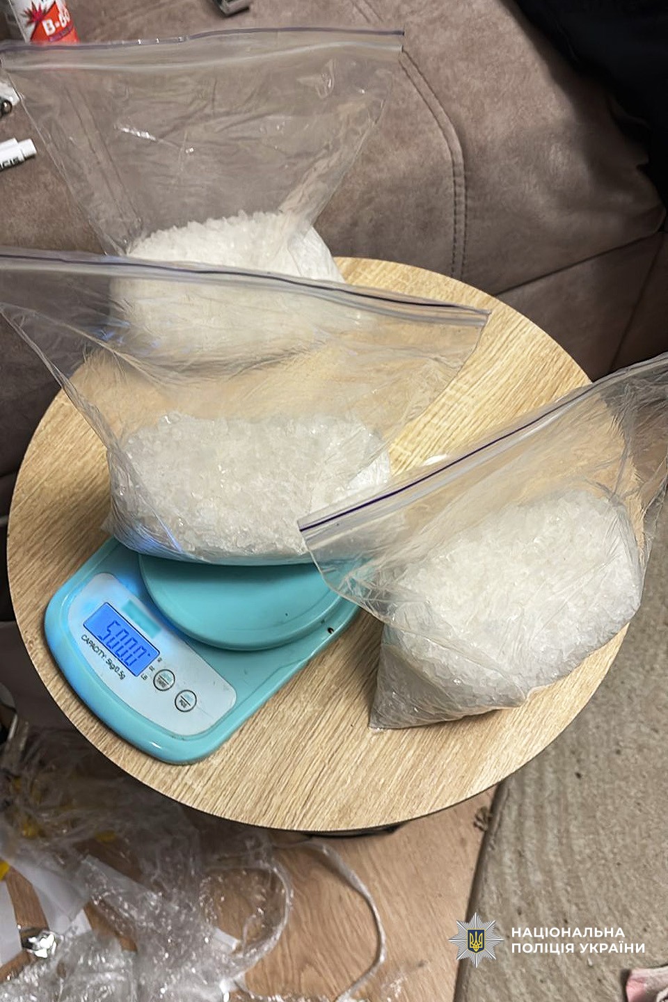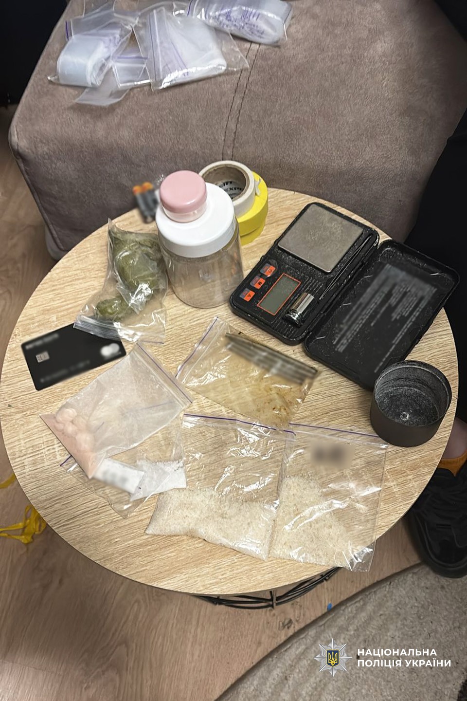 У приміщеннях, що використовувалися зловмисниками, правоохоронці провели низку санкціонованих обшуків. Під час цих слідчих дій у членів угруповання загалом виявлено та вилучено близько двох кілограмів наркотиків та психотропів, у тому числі лише солей «Alfa PVP» – понад 1500 грамів. Також поліцейські вилучили декілька електронних вагів з нашаруванням речовини, безліч пакувального матеріалу, специфічні засоби кріплення «закладок», мобільні телефони та банківські картки, інші речові докази.