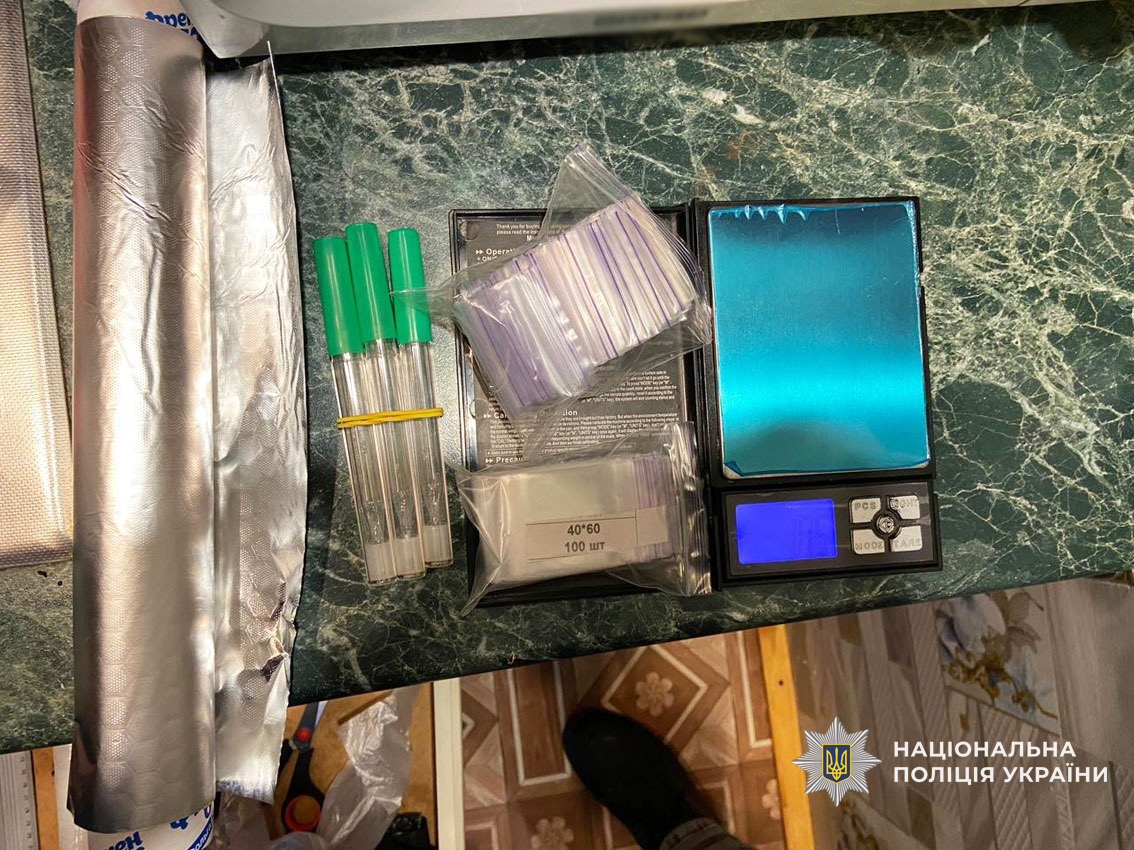 В ході обшуків правоохоронці вилучили обладнання хатньої нарколабораторії — колби, мірні ємності, термометри, ваги тощо; десятки зіп-пакетів з розфасованою порошкоподібною речовиною білого кольору; банківські картки, мобільні термінали та змінні сім-картки, грошові кошти у вітчизняній та іноземній валюті.