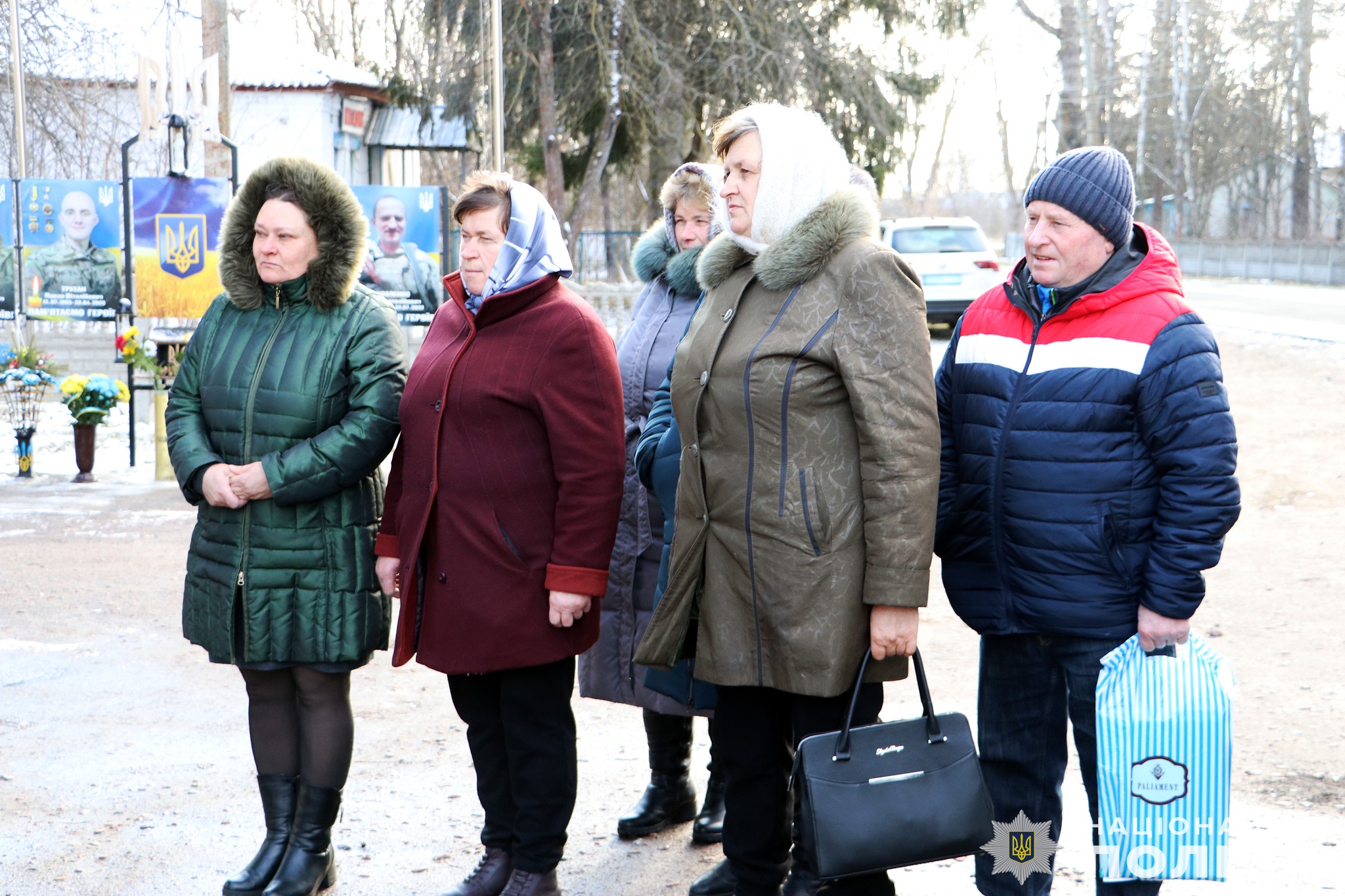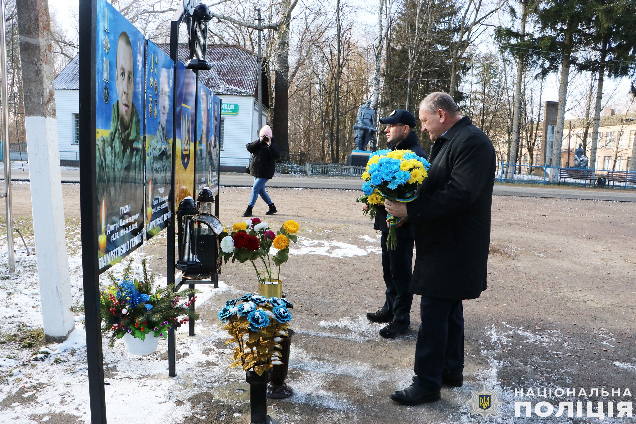 Захід з відкриття поліцейської станції керівник обласної поліції розпочав з вшанування пам’яті мешканців громади, полеглих на війні з російським агресором. Іван Іщенко та Володимир Ігнатченко поклали квіти до встановленого у центрі села меморіалу Героям-односельцям.