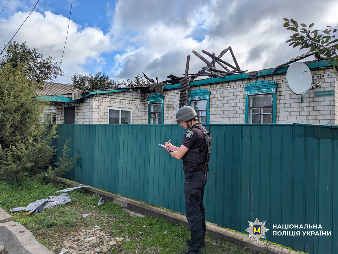 Поліцейські фіксують наслідки атаки та збирають докази чергових воєнних злочинів окупантів.