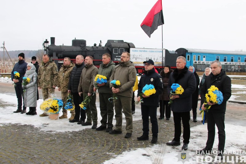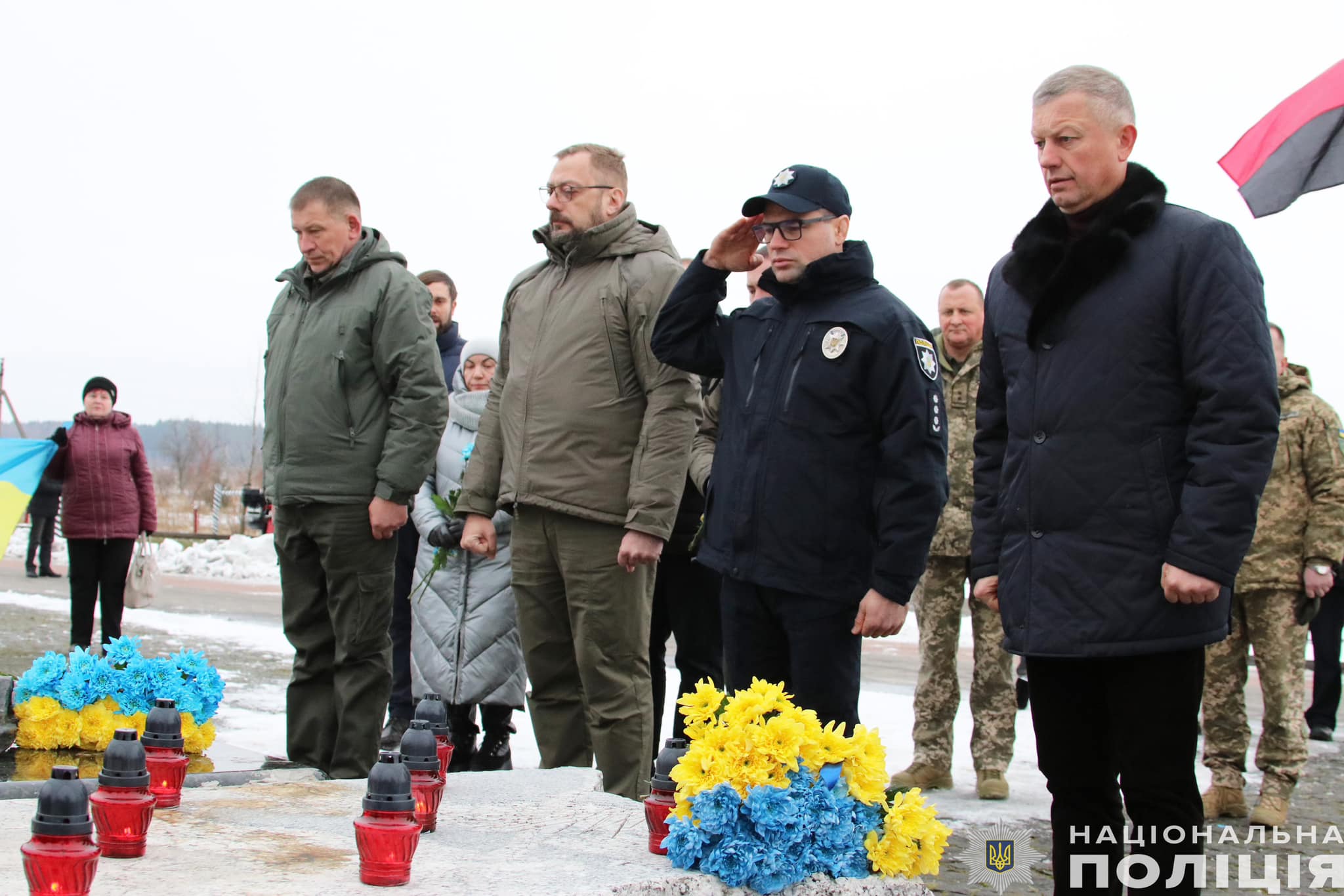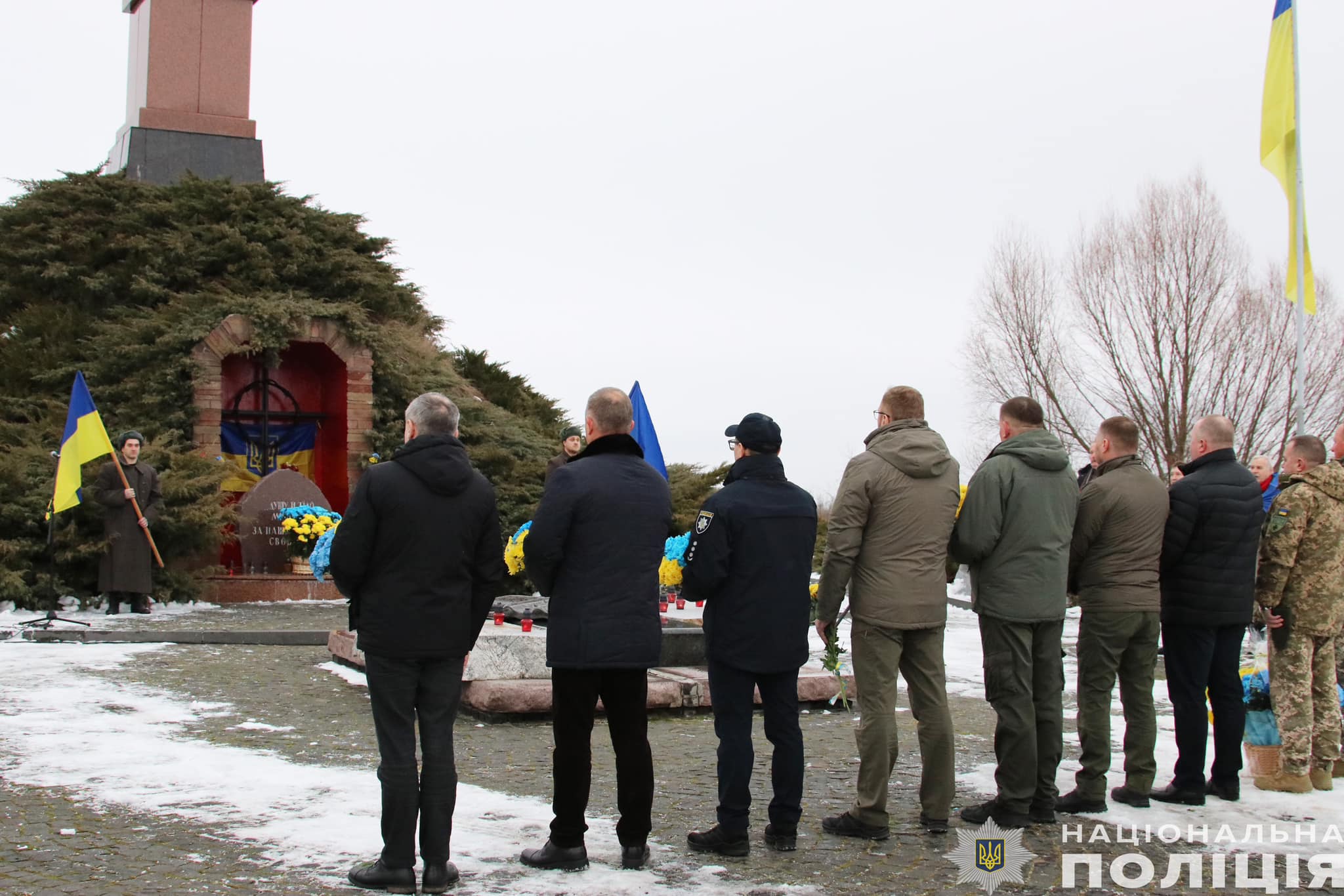 Керівник обласного управління Нацполіції Іван Іщенко спільно з представниками місцевої влади, громадських організацій поклали квіти і запалили лампадки на території меморіального комплексу, спорудженого в пам'ять про подвиг Героїв Крут.