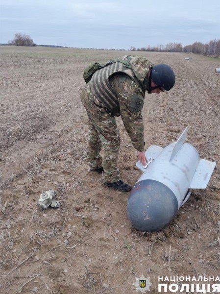 Фахівці управління вибухотехнічної служби поліції Чернігівщини впродовж дня відпрацювали два виклики в різні райони області, де було виявлено залишки випущених росіянами авіаційних ракет. Нерозірвані суббоєприпаси поліцейські успішно знешкодили.
