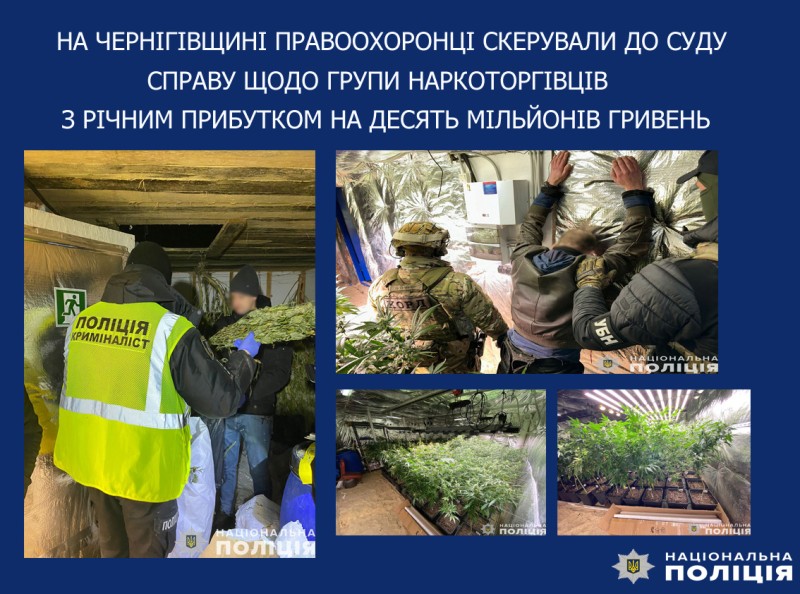 На Чернігівщини правоохоронці скерували до суду справу щодо групи наркоторгівців з річним прибутком на десятки мільйонів гривень