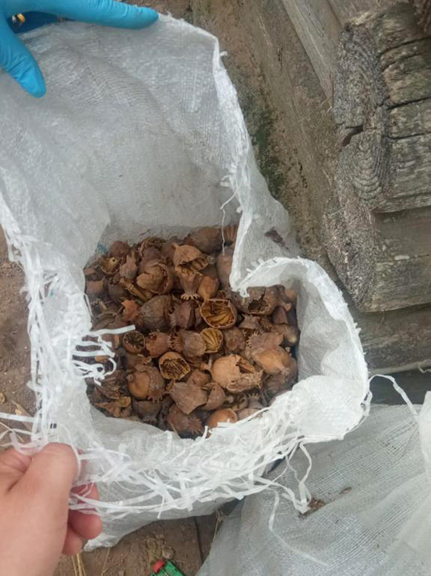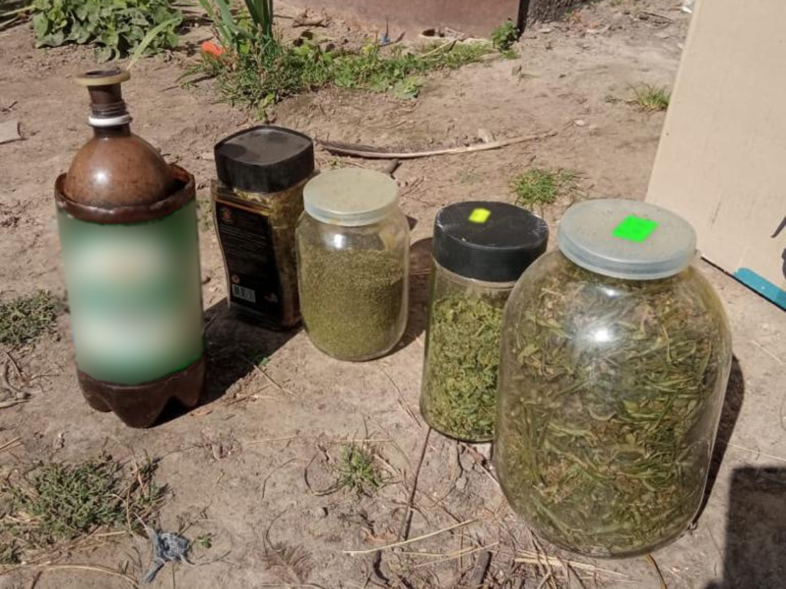 В ході санціонованого обшуку правоохоронці виявили культивовані рослини, схожі на коноплі. Також поліцейські вилучили висушену рослинну речовину, кустарні пристрої для куріння наркомістких речовин та два мішки верхівок маку.