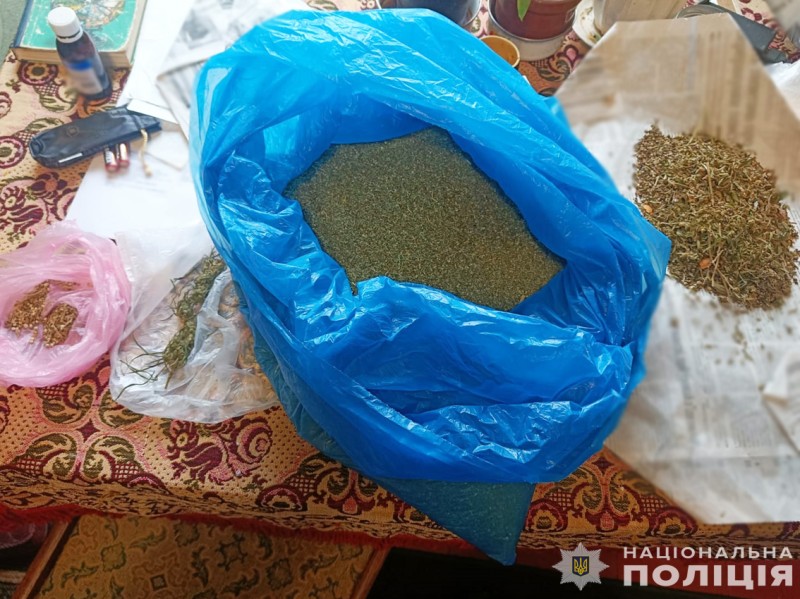 В ході слідчої дії поліцейські виявили та вилучили близько 2-х кілограмів сухої подрібненої речовини рослинного походження, зовні схожої на коноплі, а також насіння конопель.