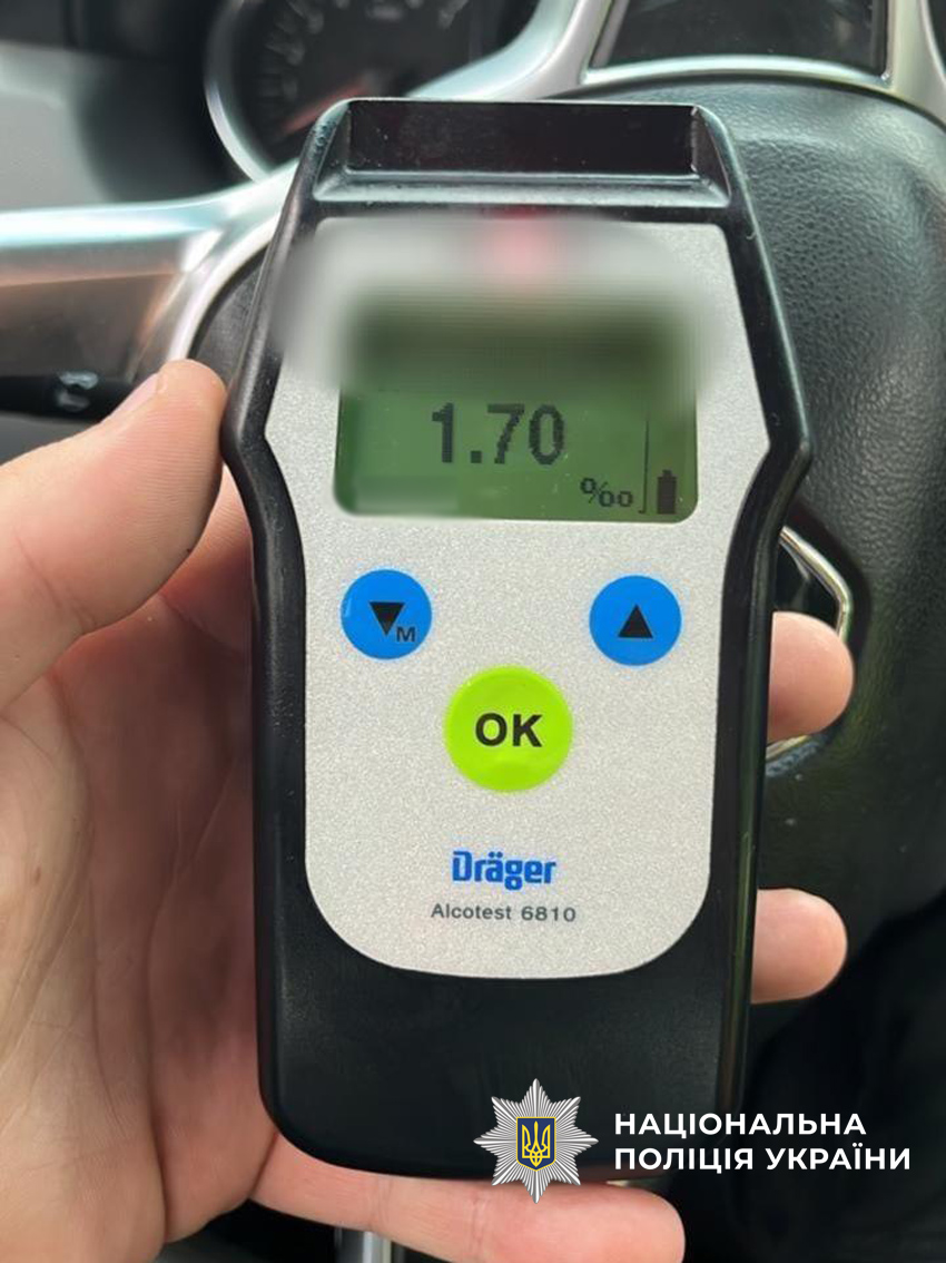 Тест, проведений на місці зупинки за допомогою приладу Drager показав, що рівень алкоголю в його крові складає 1,74 проміле.