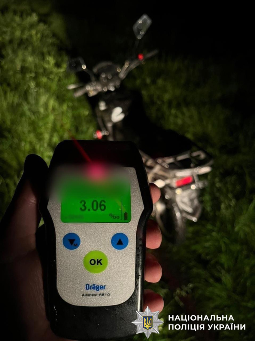 У Коропській громаді під час нічного патрулювання, коли діяла комендантська година, поліцейські з реагування патрульної поліції зупинили мотоцикліста. У 33-річного водія виявили явні ознаки сп’яніння.