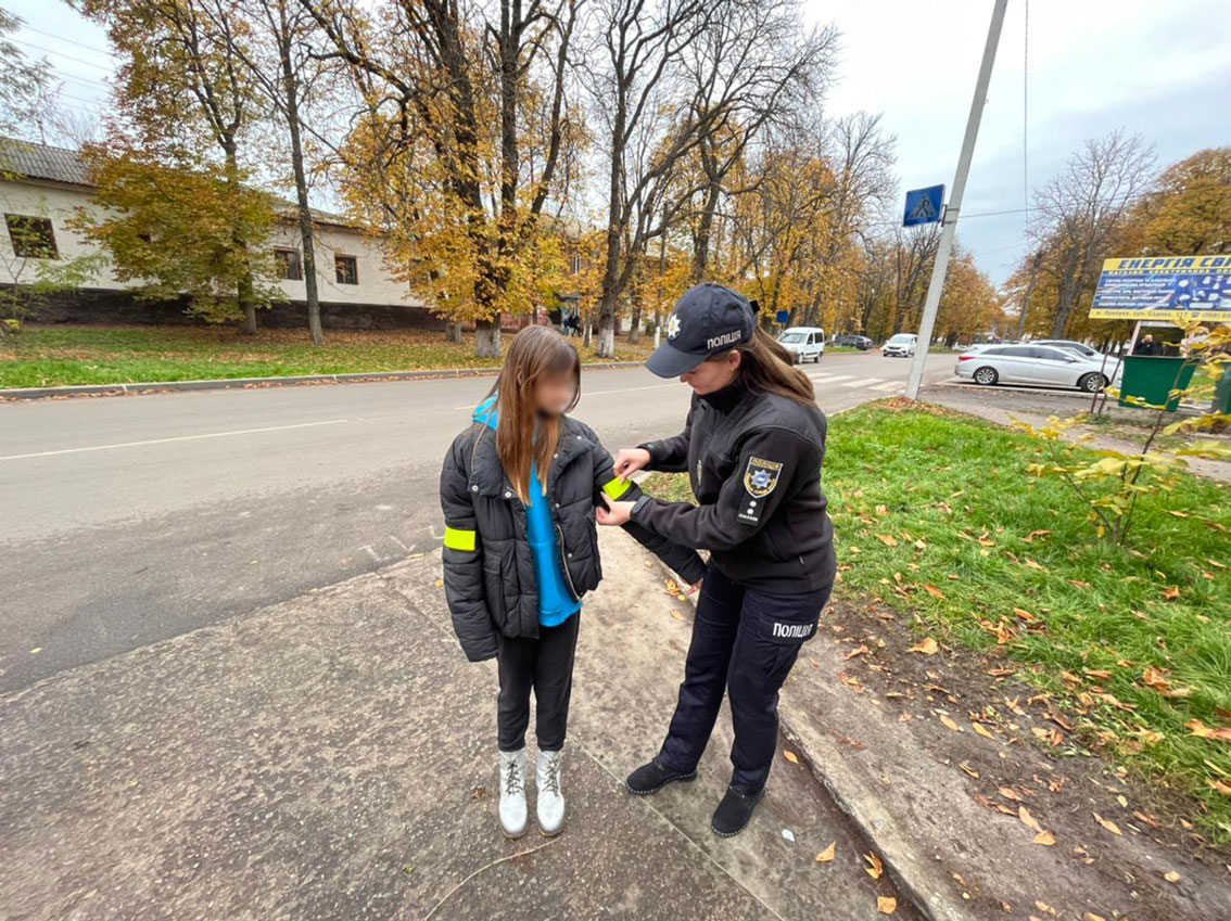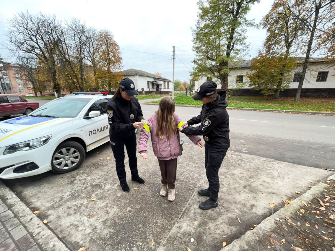 Також поліцейські роздали пішоходам світловідбиваючі браслети. Особливу увагу приділяли дітям шкільного віку.