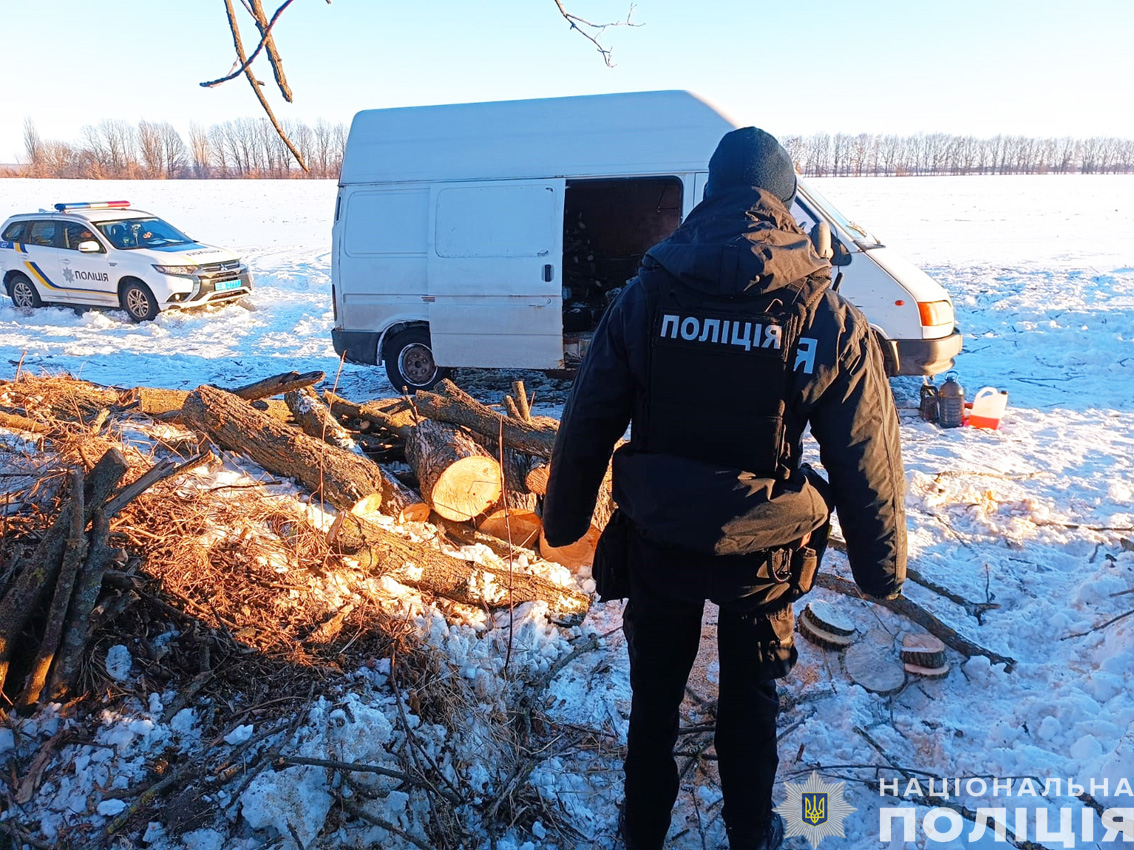17 січня в ході проведення відпрацювання з виявлення фактів незаконної порубки лісу поліцейські помітили в лісосмузі чоловіків, які розпилювали дерева та вантажили деревину в автомобіль.