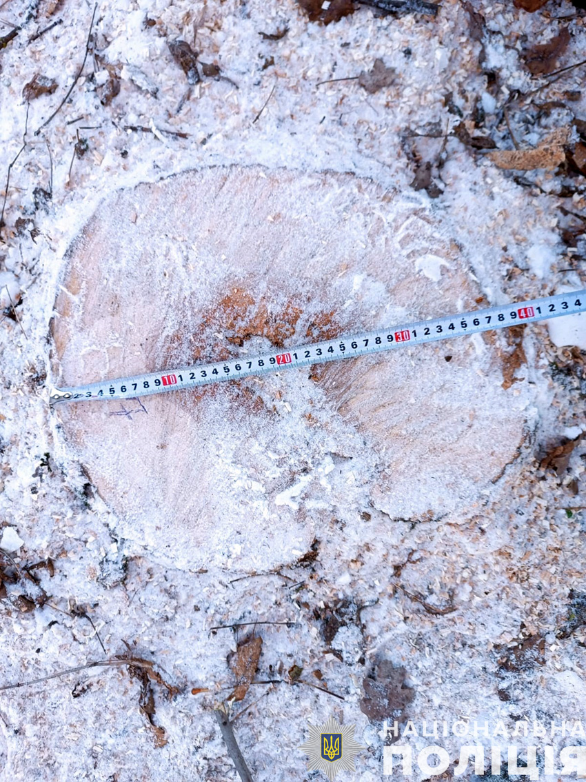 Особи, що перебували на місці події - троє чоловіків віком від 32 до 40 років - не надали поліцейським жодних документів, які б дозволяли порубку деревини.