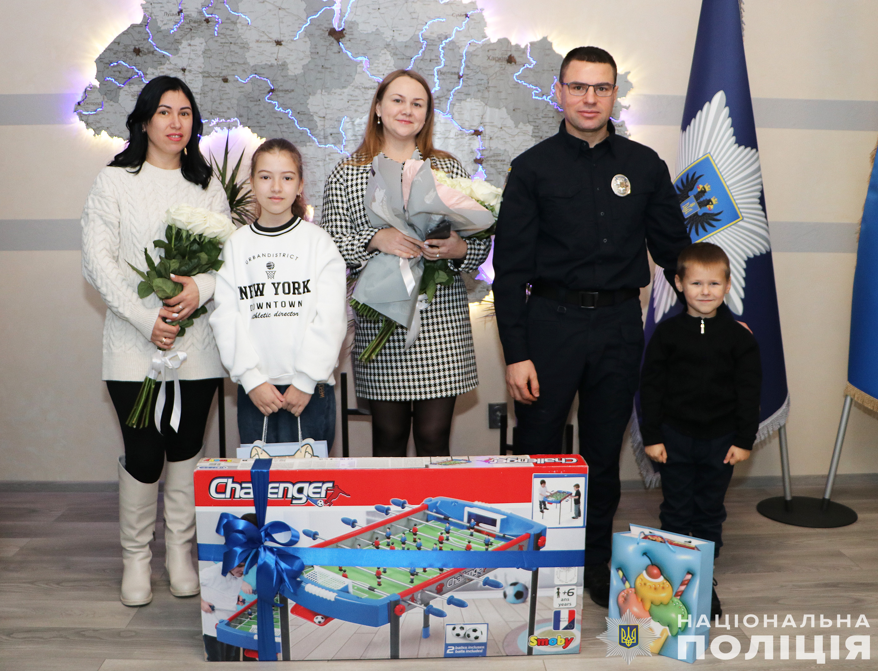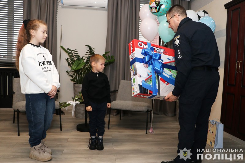 Начальник обласної поліції Іван Іщенко привітав дітей загиблих побратимів з Днем народження та разом з колегами вручив Марку та Веронічці омріяні подарунки.