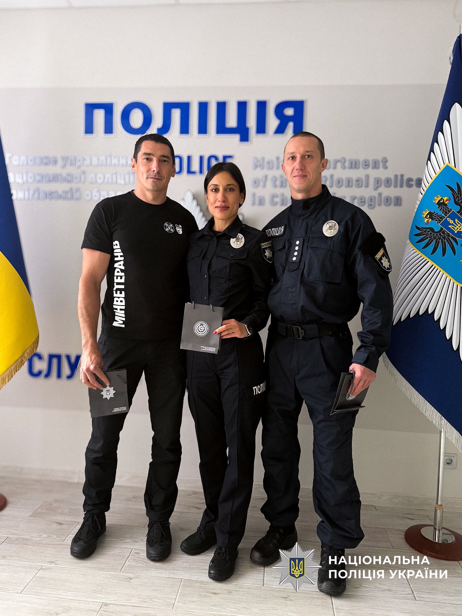 Керівник обласної поліції Іван Іщенко відзначив здобутки на спортивній арені ветеранів поліції Чернігівщини Андрія Нестеренка і Антона Душка, а також поліцейської Лілії Бондаренко.