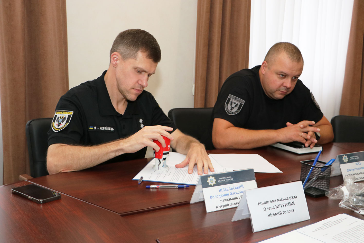 Сьогодні начальник Головного управління Нацполіції в Чернігівській області Володимир Нідзельський уклав меморандуми про співпрацю з головами трьох територіальних громад області – Городнянської (Чернігівський район) та Малодівицької і Ічнянської (Прилуцький район). Захід відбувся у рамках реалізації проєкту «Поліцейський офіцер громади».