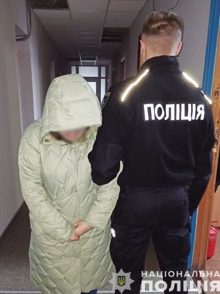 3 місця події поліцейські вилучили ніж та інші речові докази. Зловмисницю затримано y порядку статті 208 Кримінального процесуального кодексу України. Слідчий повідомив їй про підозру у вчиненні кримінального правопорушення, передбаченого ч.2 ст.15 та ч.1 ст.115 (замах на вбивство) Кримінального кодексу України.