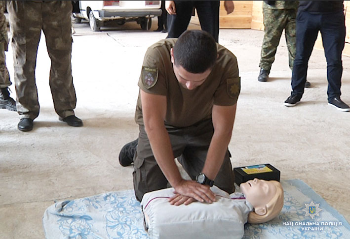 Після «блокпосту» бійці відпрацювали навички надання першої медичної допомоги в польових умовах. Правоохоронці повинні мати практичні знання з порятунку життя побратимів та навичок евакуації за будь-яких умов.