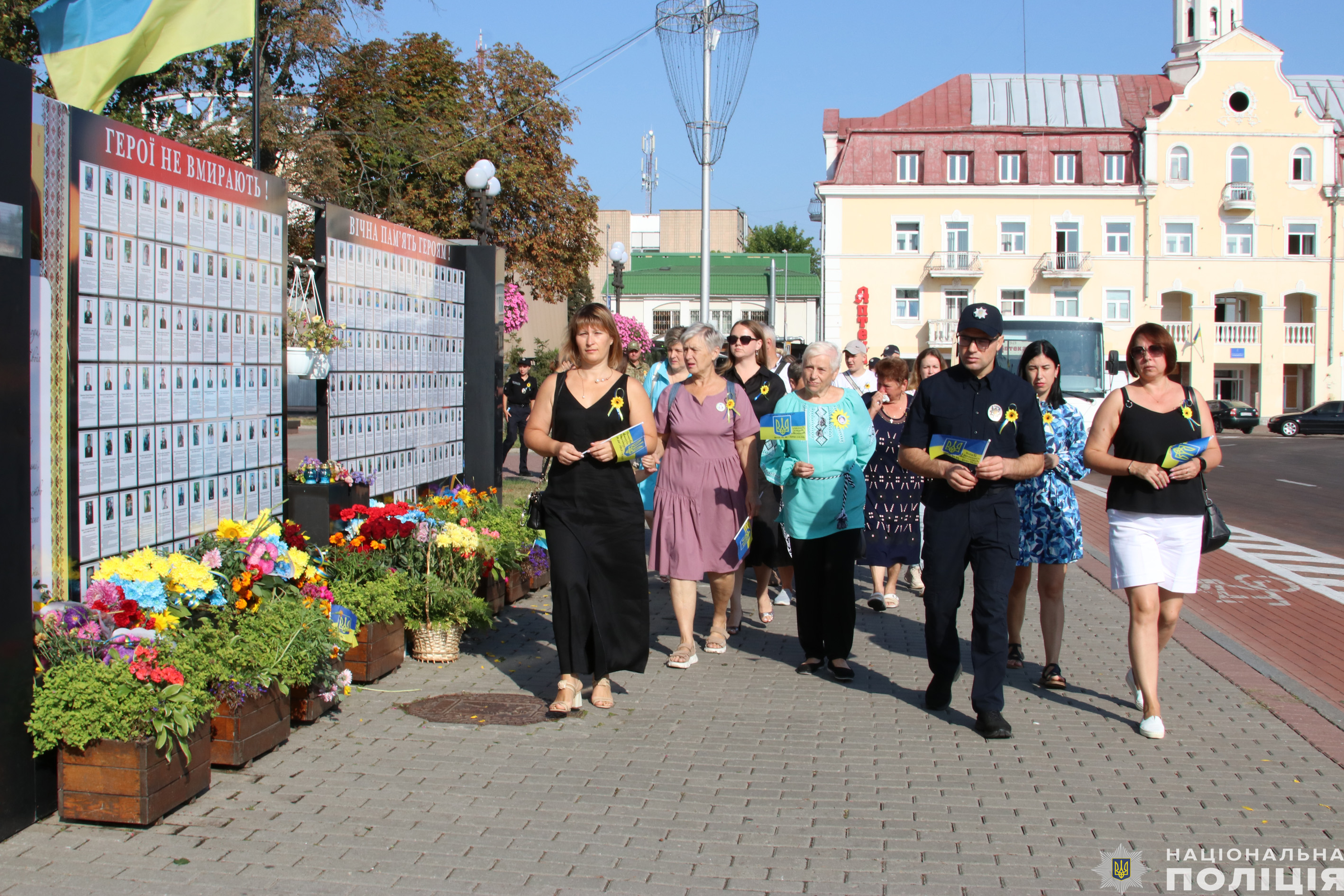 Учасники пам’ятного заходу прикріпили до одягу квітку соняшника, як символ цього трагічного та пам’ятного дня, коли у 2014 року у соняшникових полях під Іловайськом поклали свої життя сотні українських воїнів, прориваючи оточення ворога.