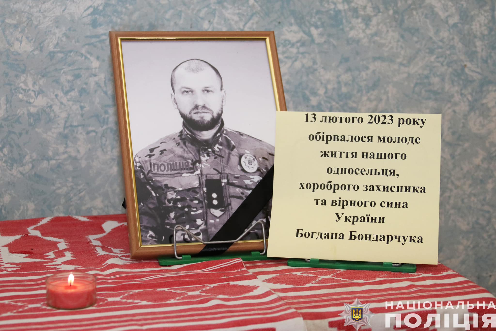 Лейтенант поліції Богдан Бондарчук 20 років віддав службі в органах внутрішніх справ. З 2018 року працював у «КОРДі», де зарекомендував себе як самовідданий, професійний, сміливий, надійний та відповідальний поліцейський. У колективі Богдана згадують як вірного побратима, що завжди готовий підставити дружнє плече допомоги. Він був люблячим сім’янином та турботливим батьком для сина та двох донечок.