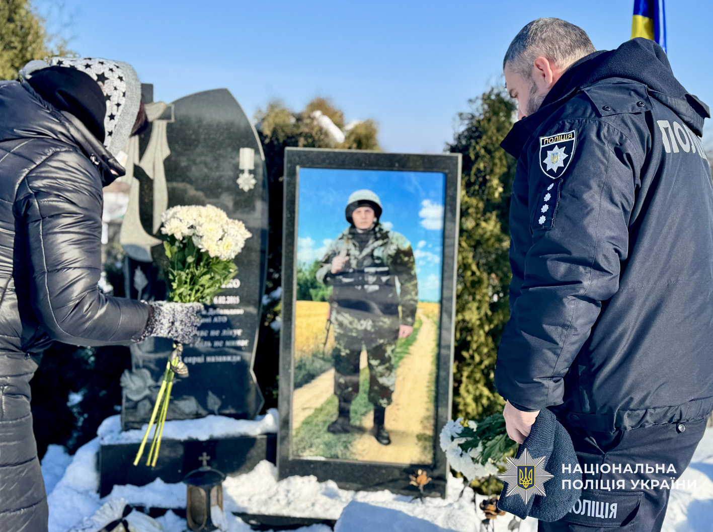 Сьогодні корюківські поліцейські вшанували світлу пам'ять Олега на кладовищі у його рідному селищі Холми. Поліцейські зустрілися з мамою Героя - Тетяною Василівною, поспілкувалися з нею, згадали роки, коли Олег підростав у батьківській хаті, ставав на ноги, навчався професії. Поліцейські ділилися спогадами про спільну службу, розповідали про сьогодення.