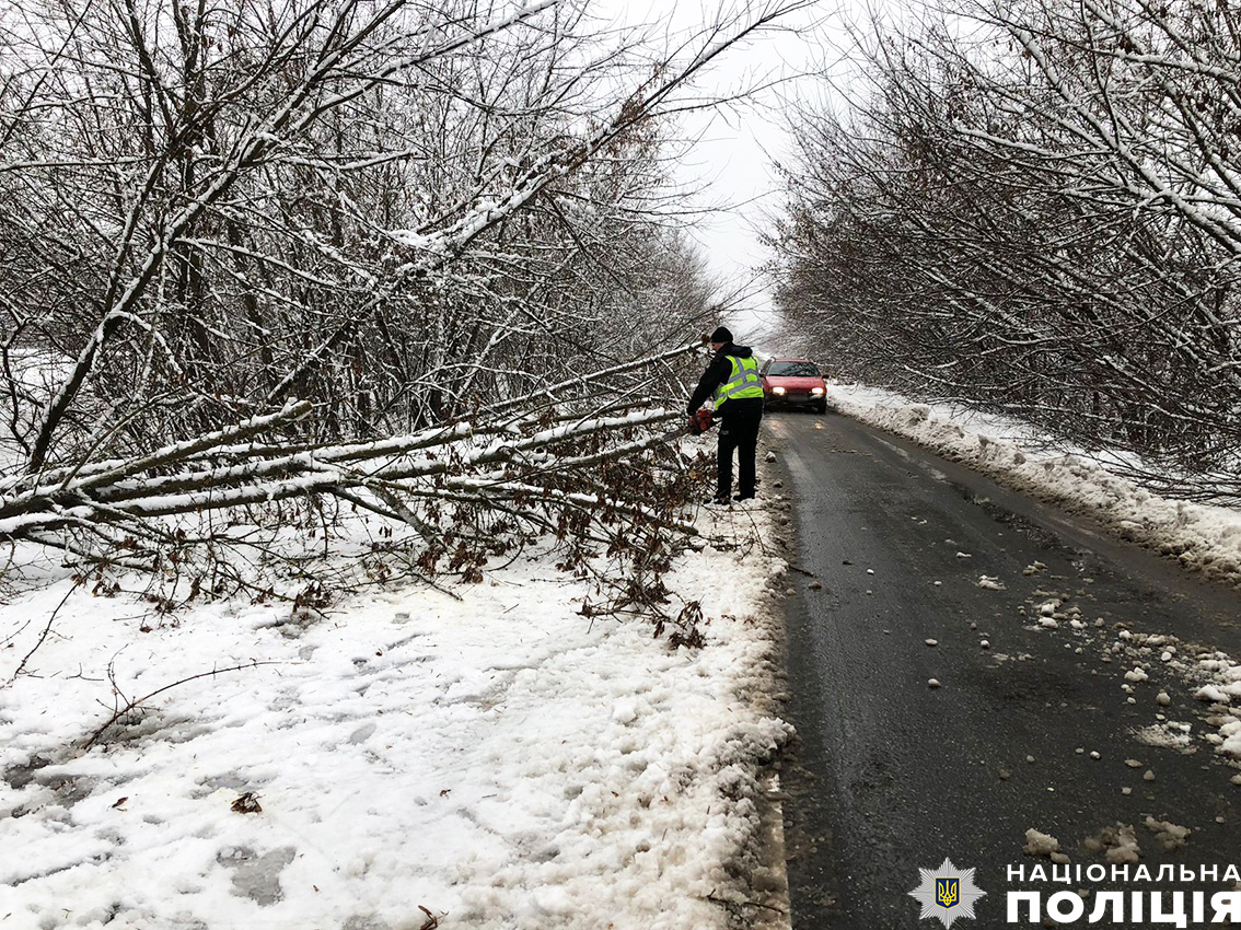 На Чернігівщині спостерігається мокрий сніг та ожеледиця. Найскладніша ситуація у найпівнічнішому Новгород-Сіверському районі: внаслідок поривів вітру, налипання снігу та льоду знеструмлені населені пункти у двох прикордонних громадах, окремі ділянки автошляхів перекриті поваленими деревами. Поліцейські несуть службу в посиленому режимі, аби мінімізувати наслідки негоди для громадян та допомогти тим, хто цього потребує.