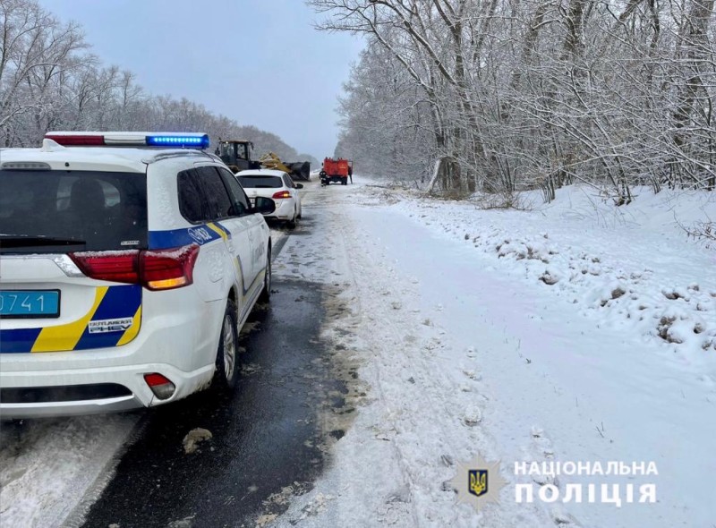 Поліція продовжує в посиленому режимі слідкувати за безпекою на дорогах області. Поліцейські разом з іншими оперативними службами ліквідовують наслідки негоди, допомагають громадянам долати труднощі: звільняють автівки зі снігової пастки, буксирують та допомагають безпечно виїхати зі складних ділянок доріг.